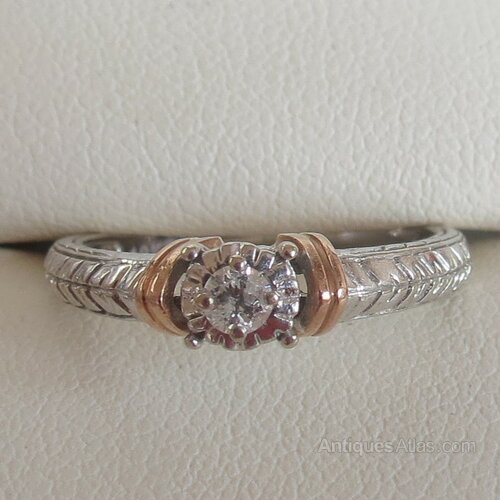 Unusual Vintage Diamond White Gold Solitaire Ring