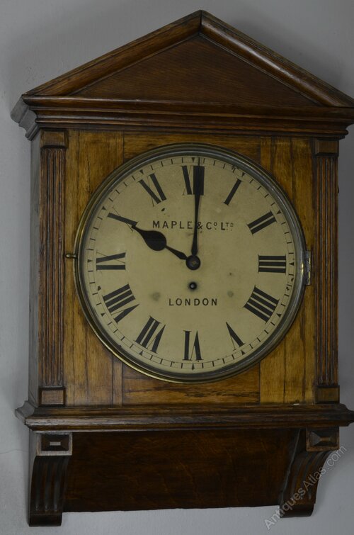 A large and impressive oak cased wall clock for Maple & Co Ltd. The 8-day Fusee movement having stop work. The dial signed Maple and having Roman numerals.DateEdwardian
