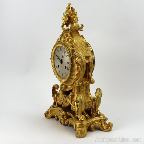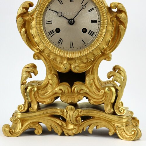 H:35cm W:22cm D:11cmA fine early 18th‑century French ormolu mantel clock, the heavy, high‑quality case retaining its original gilding. The clock features an 8‑day movement with silk suspension, striking the hours and half‑hours on a bell.