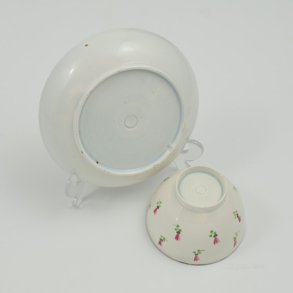 Pretty Georgian Pearlware Floral Tea Bowl & Saucer