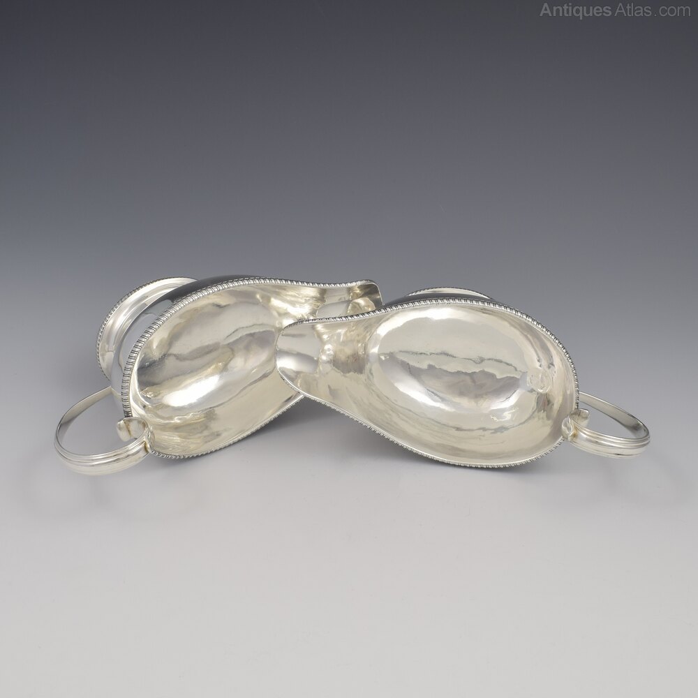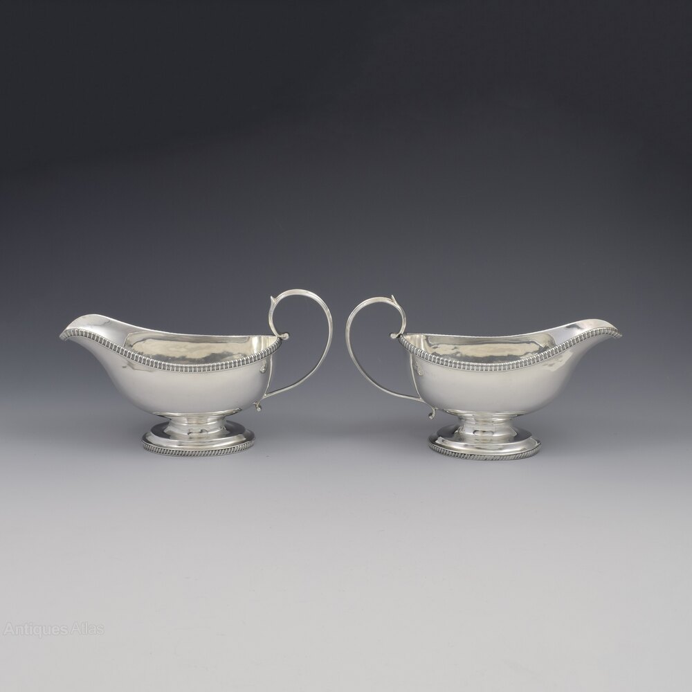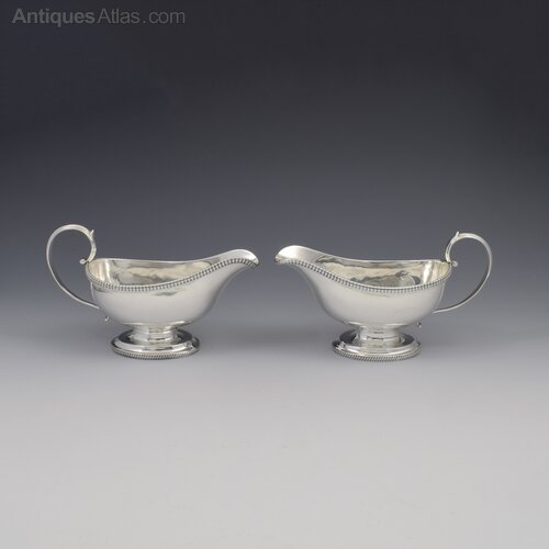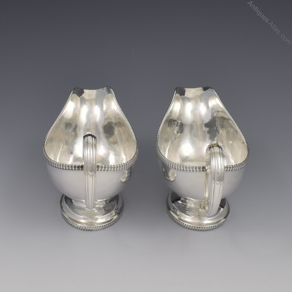 In excellent condition with no damage, dents or repairs. The hallmarks are lightly rubbed but fully legible and handling wear in the main is minimal. A beautiful pair of sauce boats, ready for use.