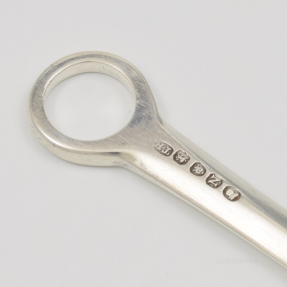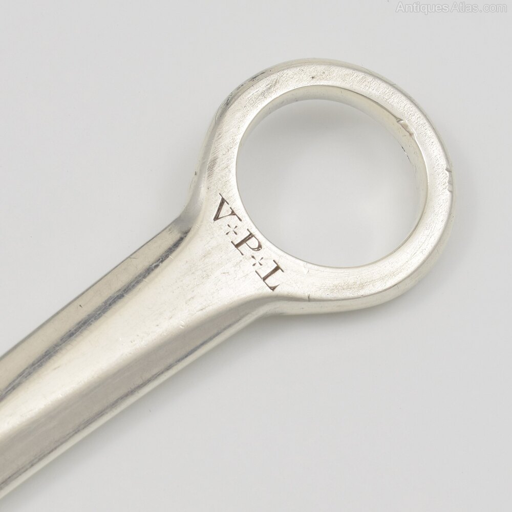 A very good George III silver meat skewer, hallmarked London 1808, maker Thomas Hayter. Contemporary engraved initials V.P.L for the original owner to the with finger loop. Ready for use, perfect for your winter roasts or also popularly used nowadays as a letter opener / paper knife.It measures 27.8cm (11") long and 2.5cm (1") wide and weighs 70g / 2.3ozt.