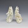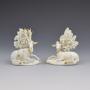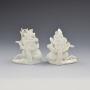 Gorgeous pair of Bloor period Derby figures of a recumbent stag and doe. Set on shaped mounded bases with applied flowers and leaves and each with a bocage behind them. Sparsely decorated in gilt. Incised number 3 to the base of each, c.1820.Provenance: ex-Dennis G. Rice Collection, and illustrated in English Porcelain Animals Of The 19th Century, D. G. Rice, plate 127, page 156.