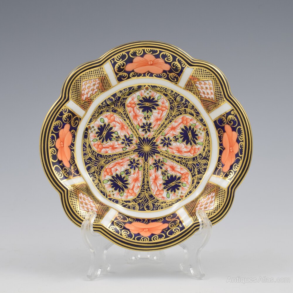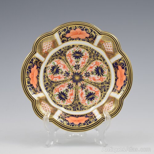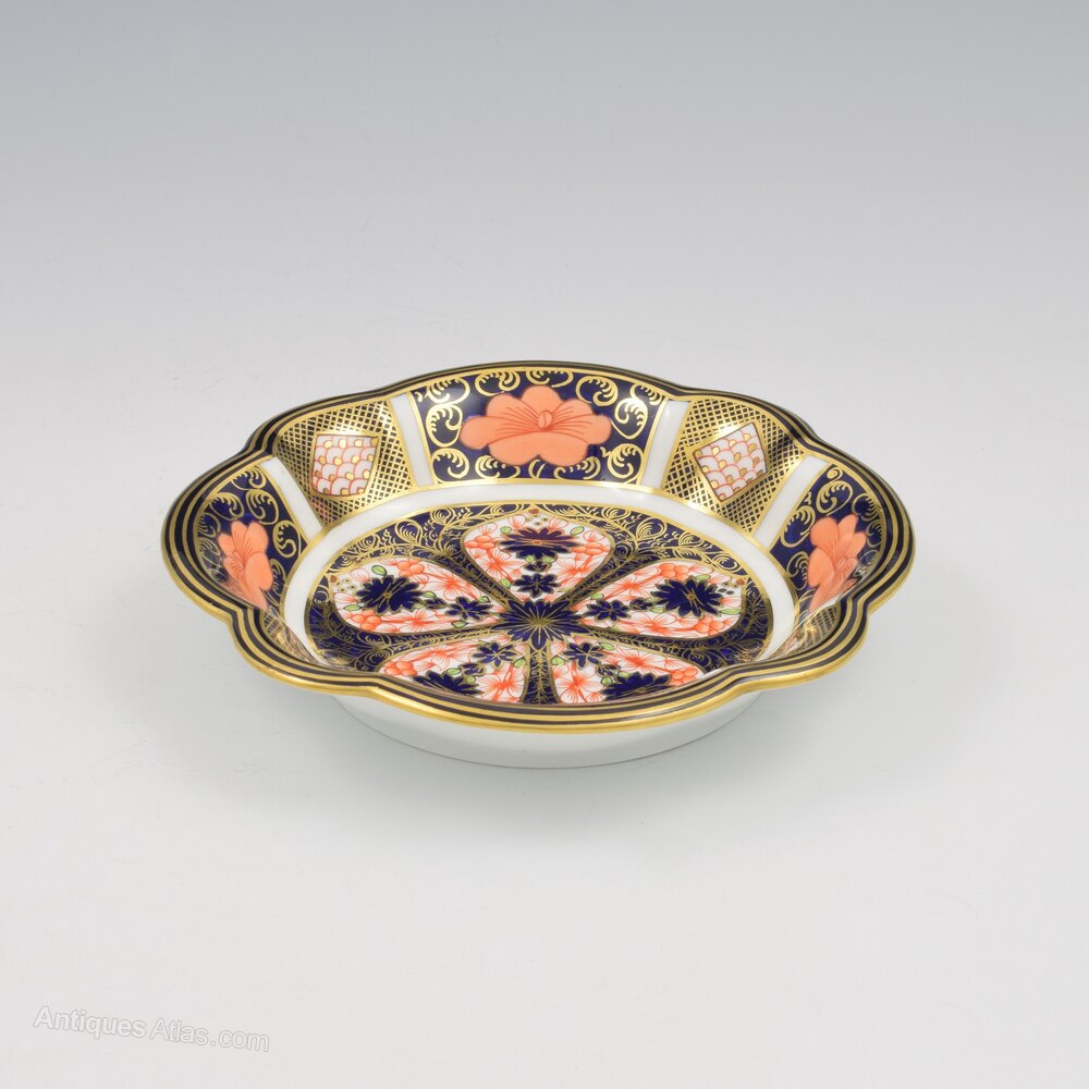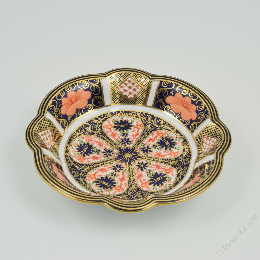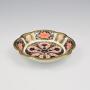A beautiful lobed porcelain sweetmeat dish by Royal Crown Derby, decorated in the ever popular imari pattern 1128. Factory marks to the base with date cypher for 1923.It measures 16cm (6 1/4") wide and 2.7cm (1 1/16") high.