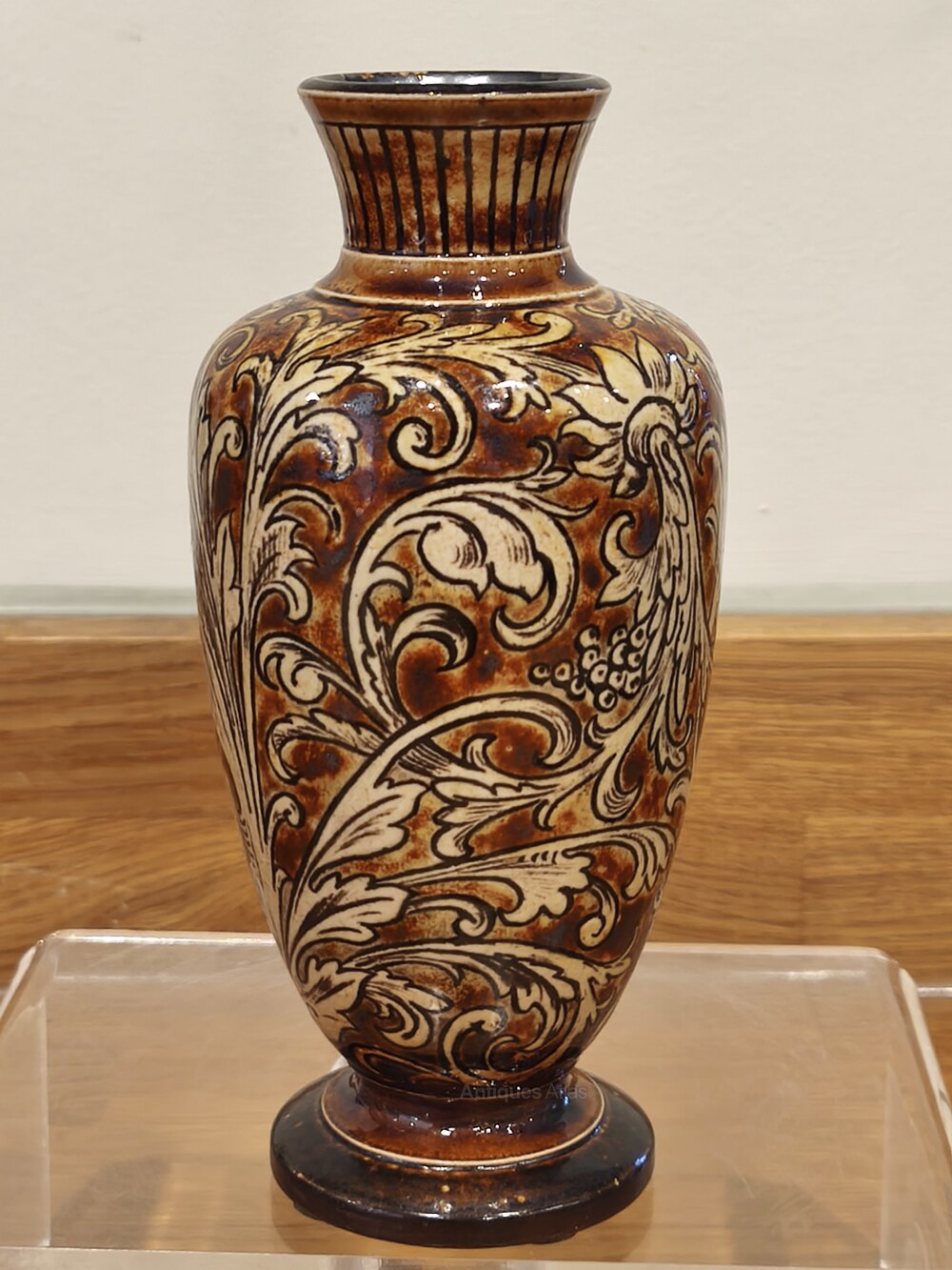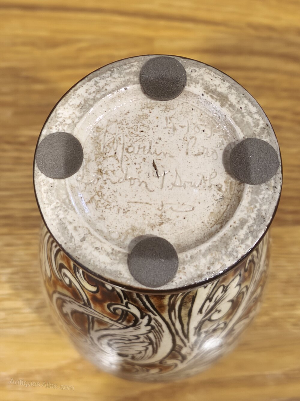 For sale today we have this stunning Martin Brothers Pedestal Vase. The vase is hand painted with a flowing Renaissance style design of exotic flowers and their associated scrolling foliage. The decoration is really crisp, and the vase itself has been superbly fired, nice and even. Fully marked to the base- Martin Bros, London + Southall, along with the date 4-10-92.We are experienced dealers in mid to high end ceramics, metalware and other items. We give honest, accurate descriptions and provide high quality photographs. Please feel free to contact us regarding any item that may be of interest to you or if you need further information.