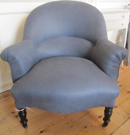 A 19th century French tub chair upholstered in blue linenDate19th Century