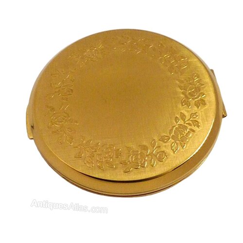A beautifully gilded vintage Stratton handbag mirror which is decorated with floral motifs.This powder compact is ideal for use as a handbag mirror or with all loose and pressed foundation.