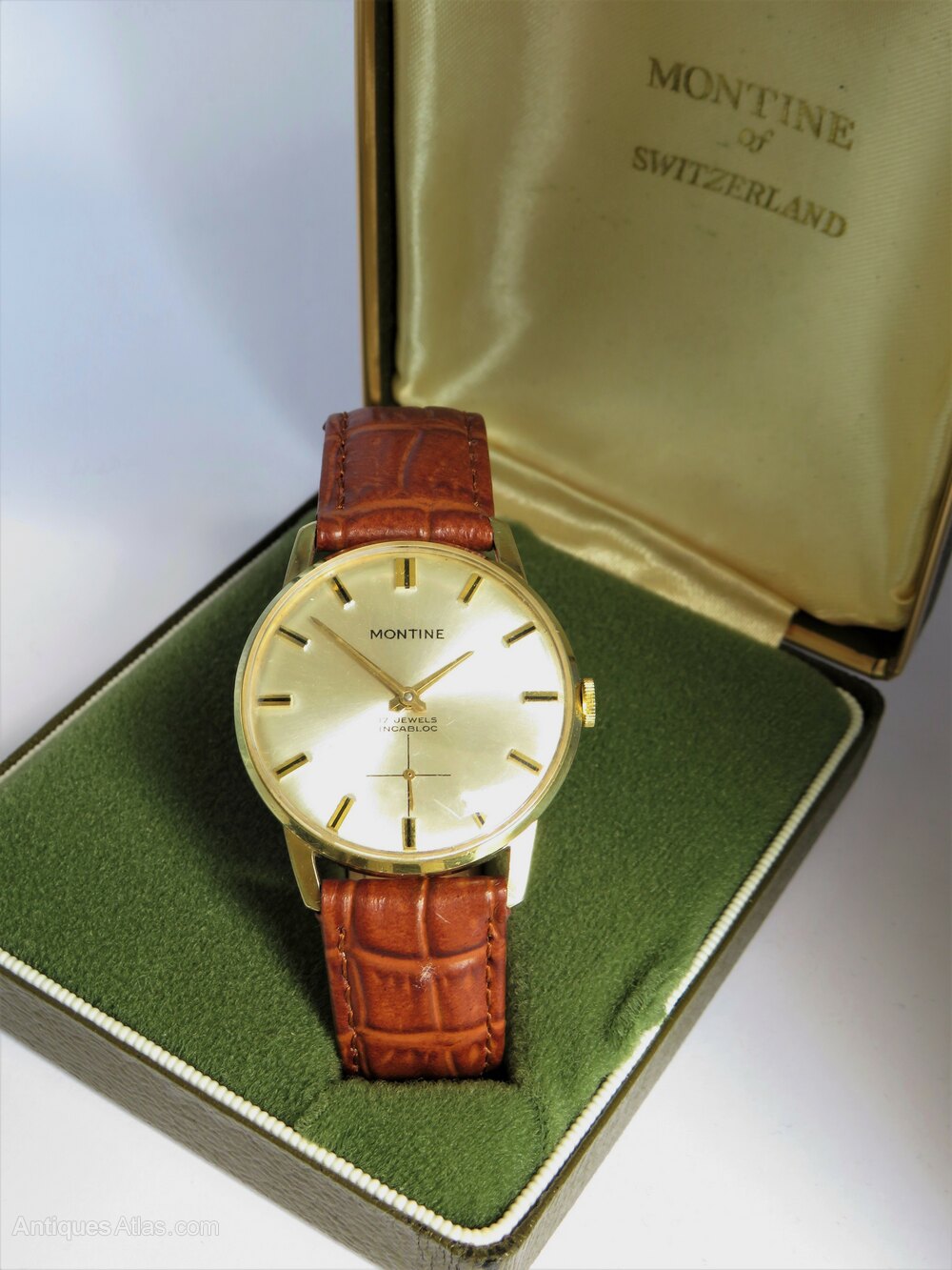 The watch comes in its Montine presentation box (the C-clip fitting is missing from the inside of the box).