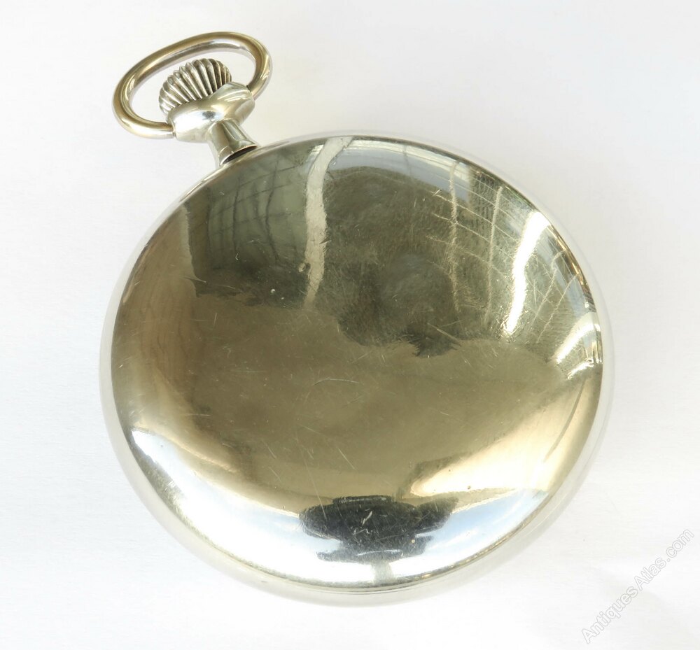 The watch measures 54mm diameter excluding the winding stem and the loop. The case is Silverode, an alloy often used in watch cases around this time, and it came under various names such as Silveroid and Silverine. The case has the odd small mark, and some unevenness to the back.