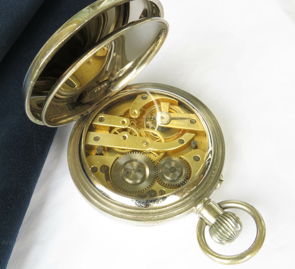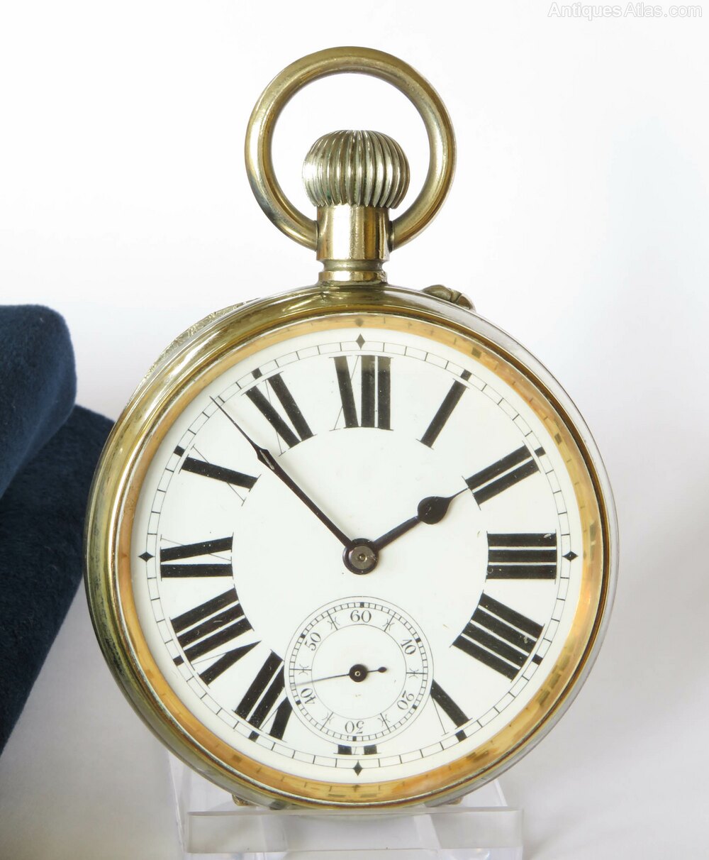 Antique goliath pocket watch, c1900.The watch has a good quality stem-winding movement which is working nicely. The movement is covered by a clear lens so that it can be safely viewed, and also an inner cover.