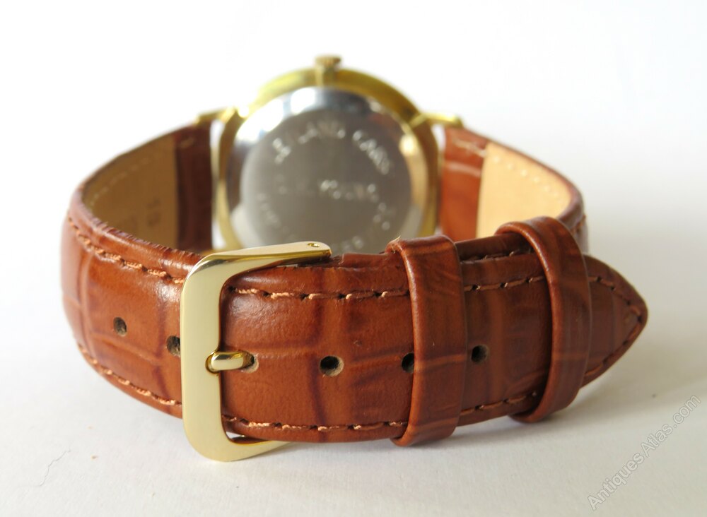 The watch measures 32.5mm diameter excluding the winding crown and the lugs. The case is gold plated while the case back is stainless steel. The case is in lovely condition. The back of the watch has a long service inscription from Leyland Cars.