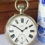 Antique goliath pocket watch, Finnigan, Manchester.The watch has a Swiss stem-winding movement which is working nicely. The movement is protected by an inner hinged cover.