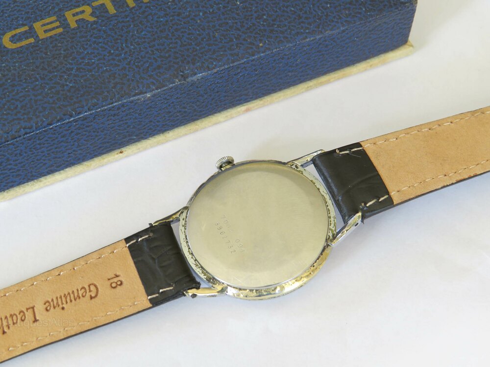 The watch measures 34mm diameter excluding the winding crown and the lugs. The case is chromium plated while the case back is stainless steel. The case back has the reference 7002 094 which confirms it is the calibre 28-10 in a chrome plated case so everything is correct. The bezel is in good condition, the sides and back of the plated case have some marking.