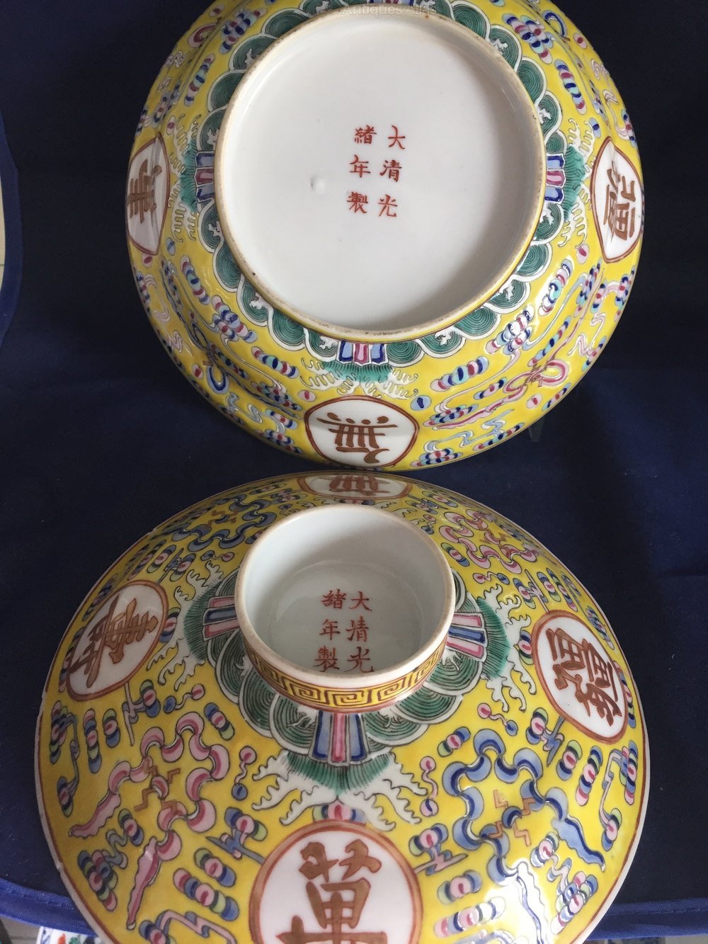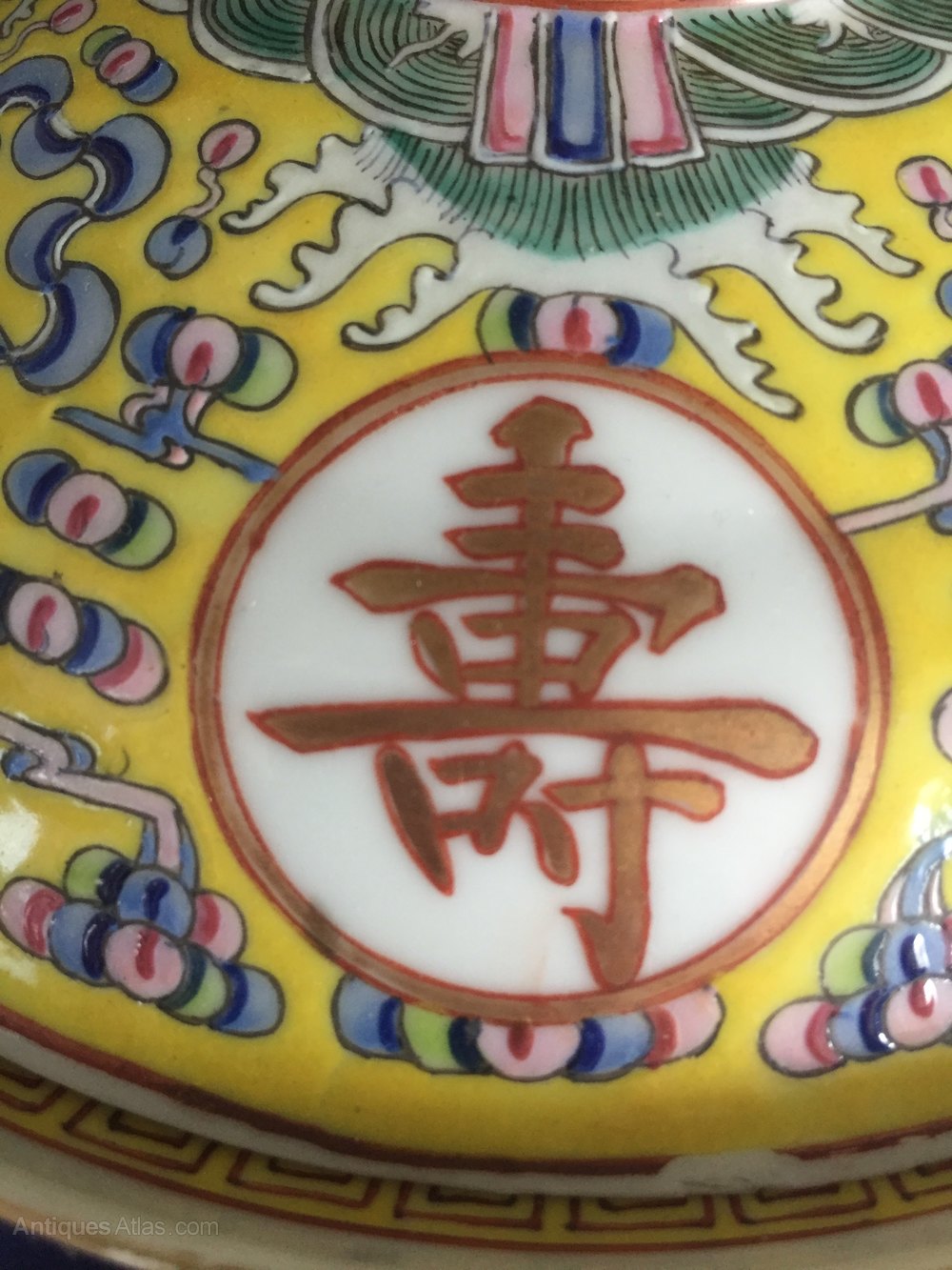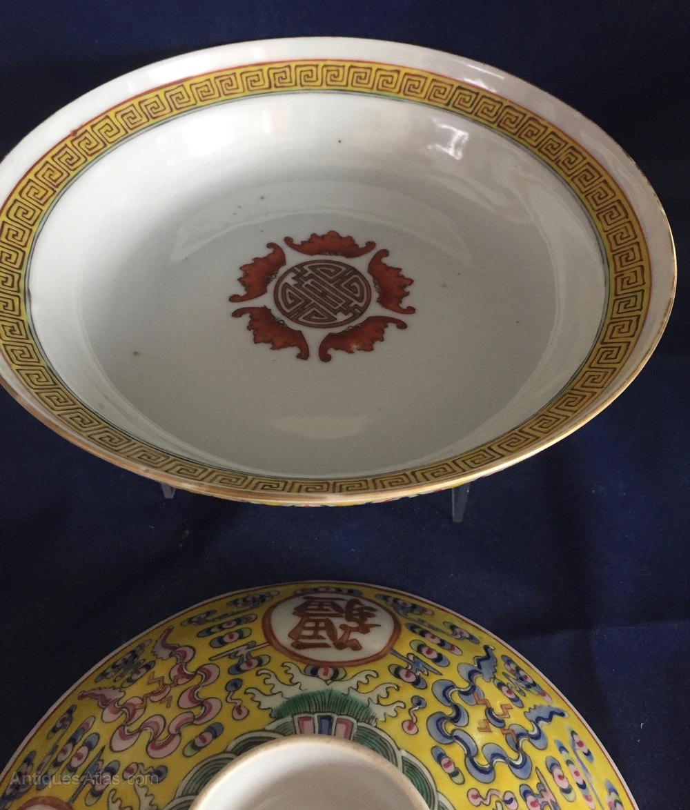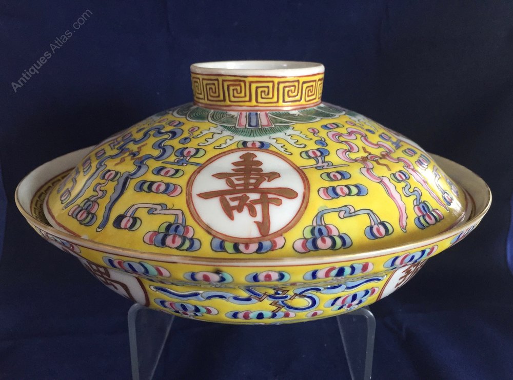 A chinese rice serving bowl and cover from a WanShou WuJiang set. These were often presented on the emperors birthday.It is marked Guangxu to the base and is of the period.