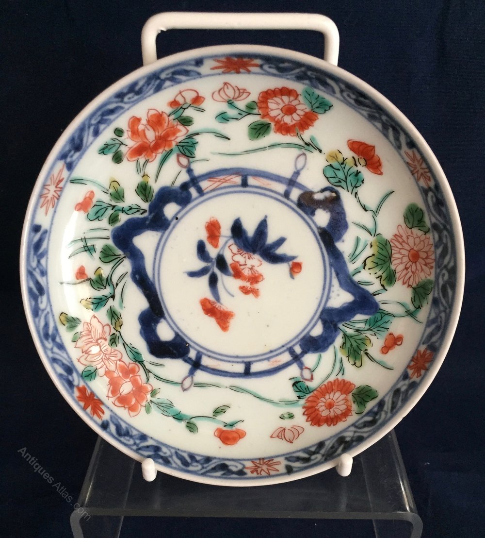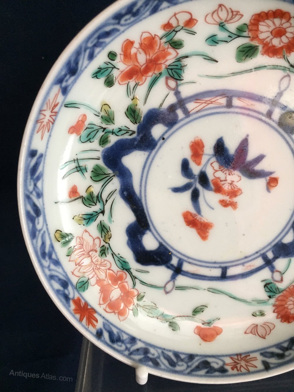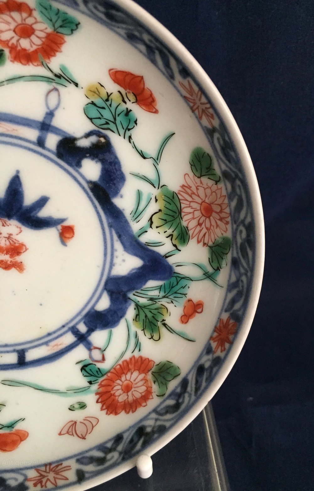 A Kakiemon Arita saucer.Dating from the early C18th., it measures 12.2cm across and weighs 106gm.