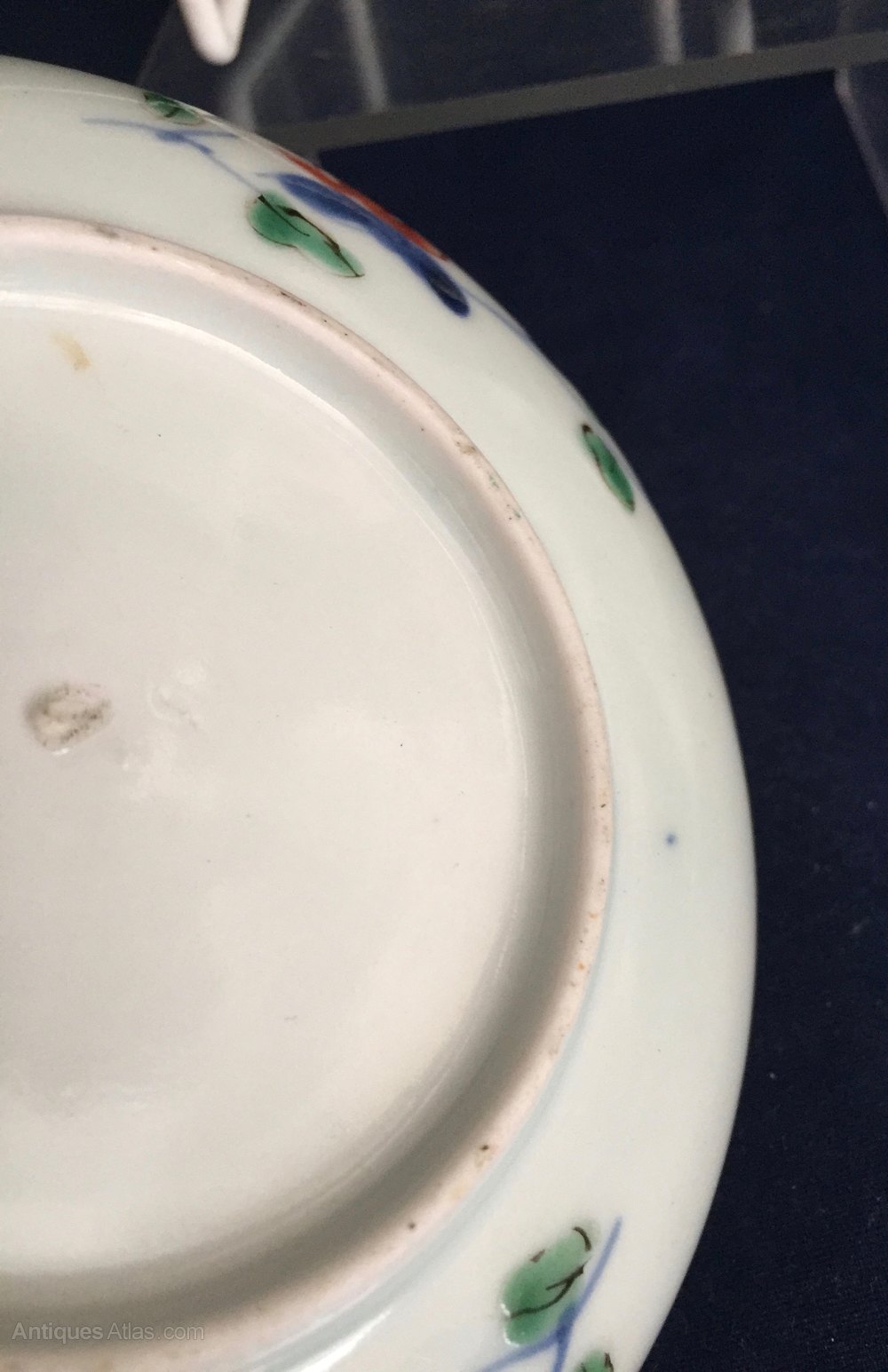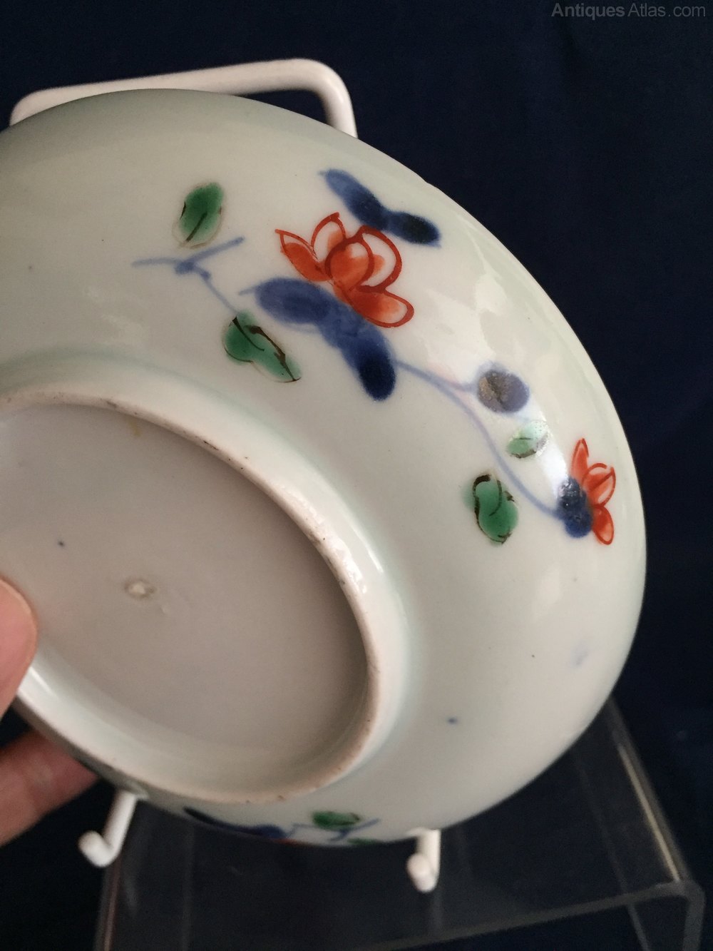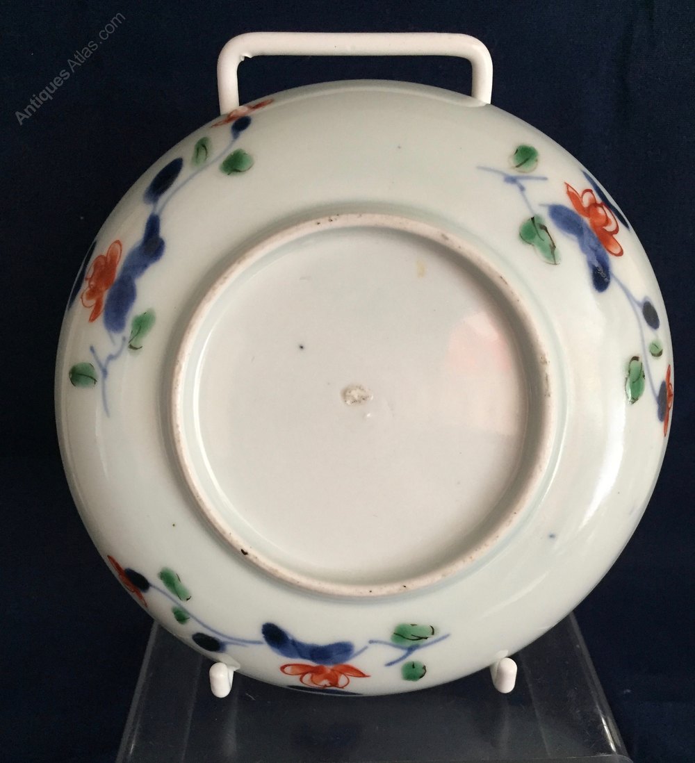 A Kakiemon Arita saucer.Dating from the early C18th., it measures 12.2cm across and weighs 106gm.