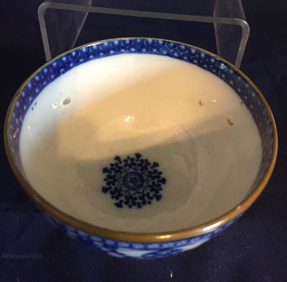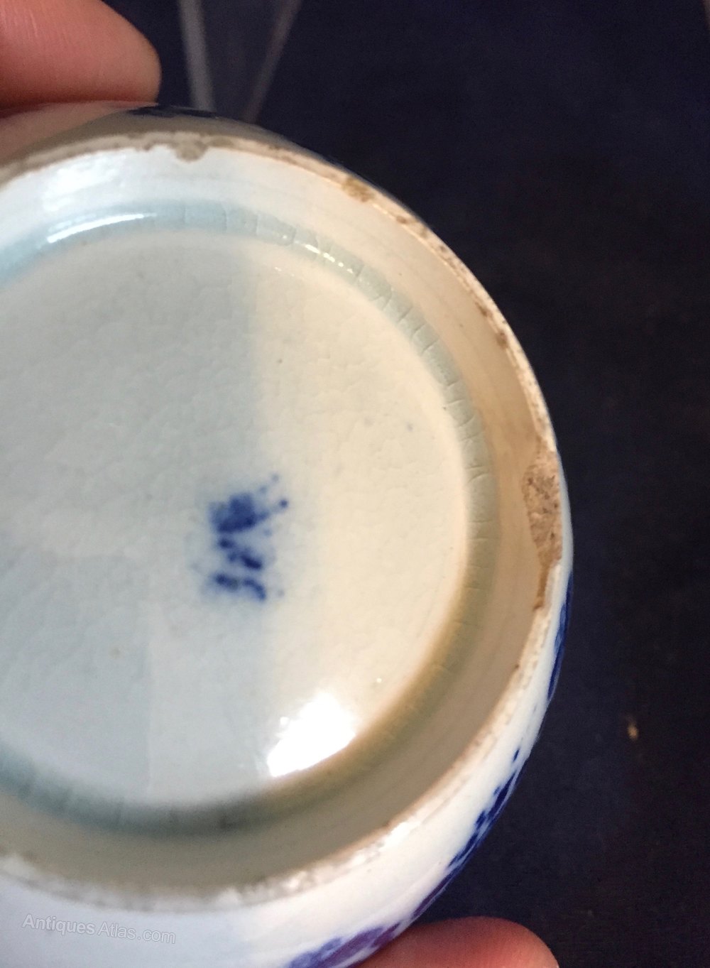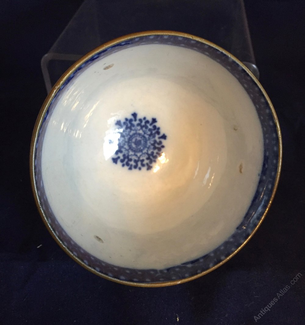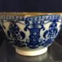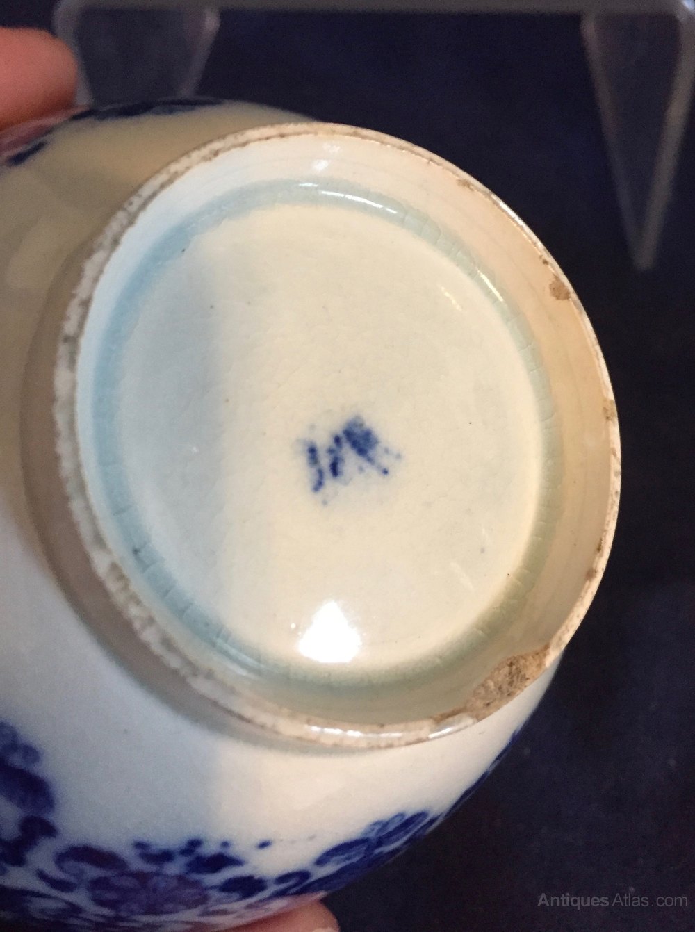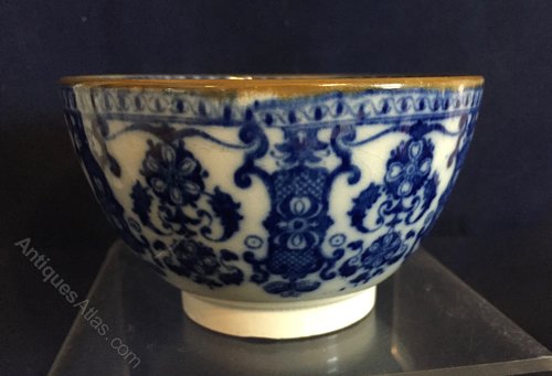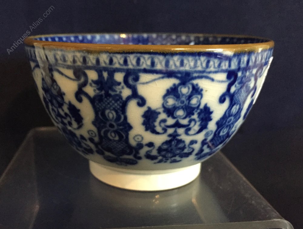 An C18th underglaze blue transfer printed tea bowl.It measures 9cm across and weighs 74gm