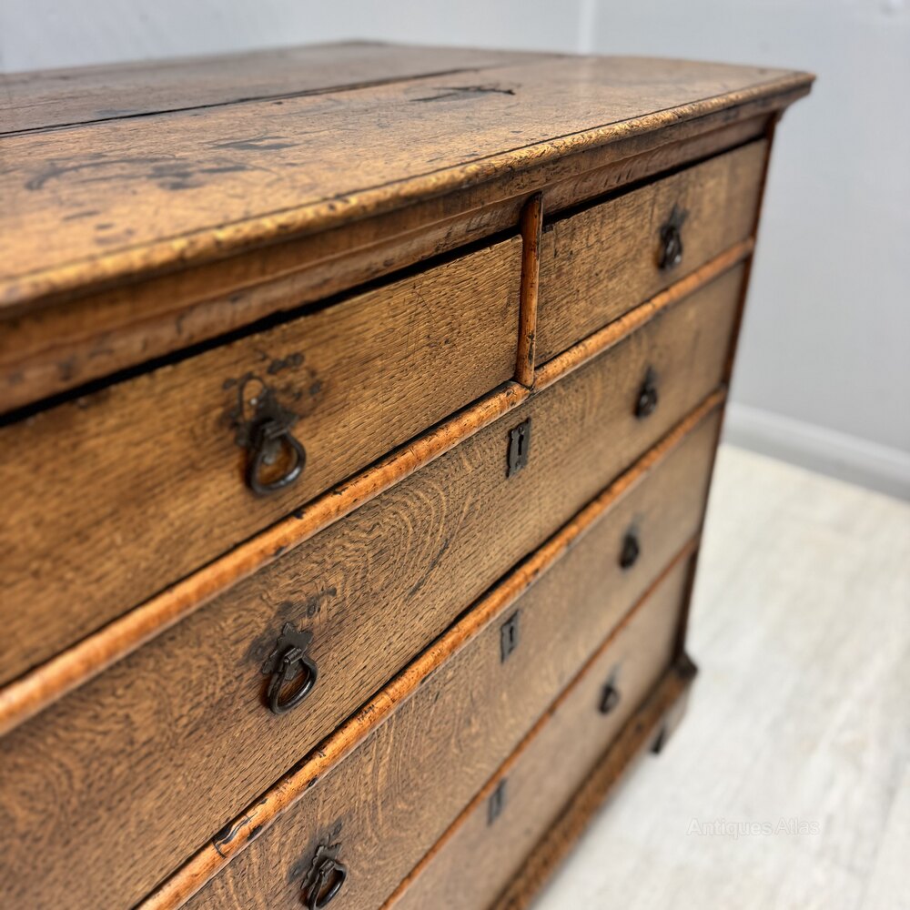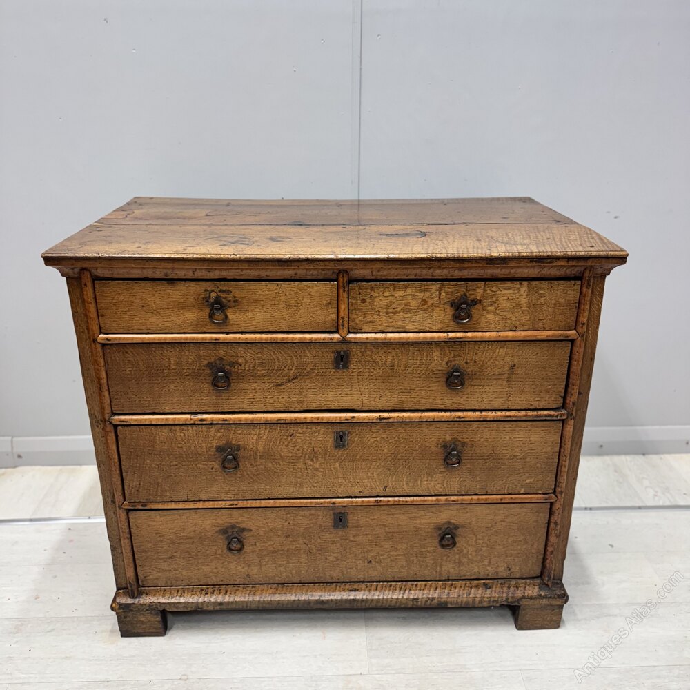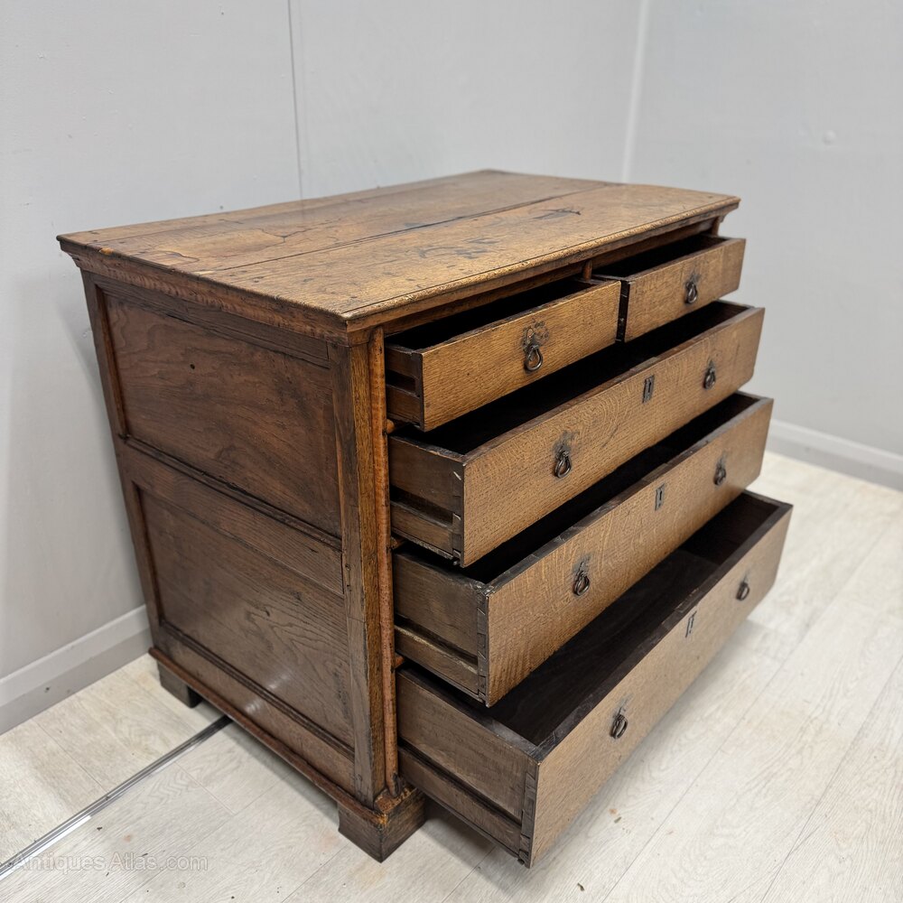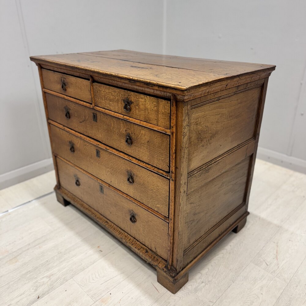 Super late 17th century English fruitwood panelled side chest of drawers, circa 1680.Useful size if you’re using it for bedroom storage, but being such a fabulous warm fruitwood colour tone and the style will lend itself to a decorative piece in a living room for example.