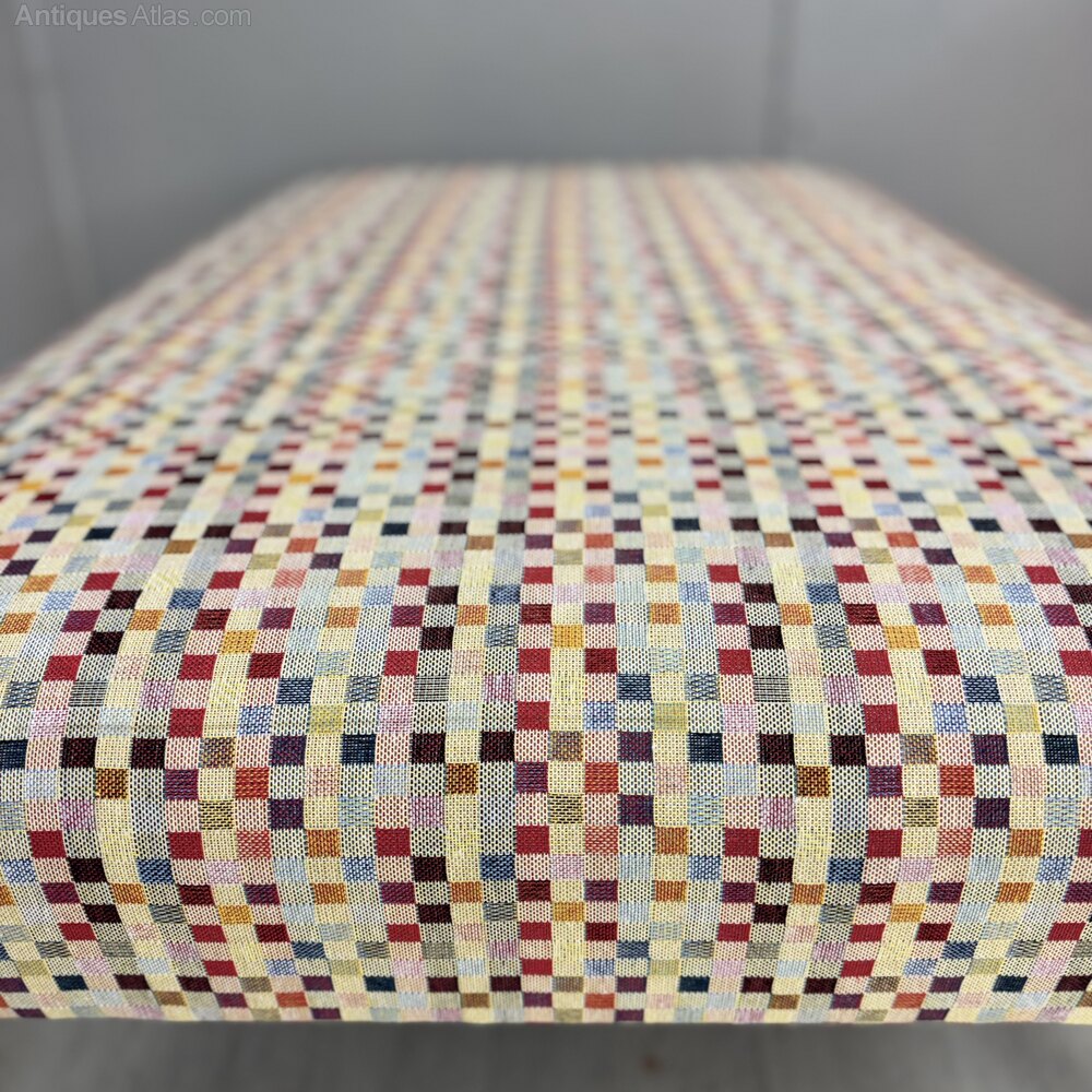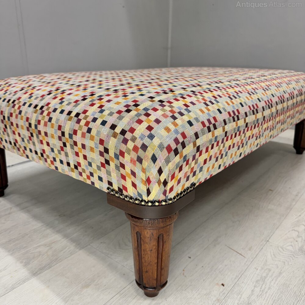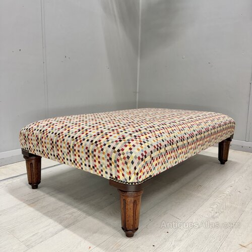 Large Antique Ottoman Stool In Geometric Fabric