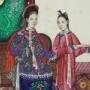 Chinese Pith Painting of Empress & Attendant, Qing
