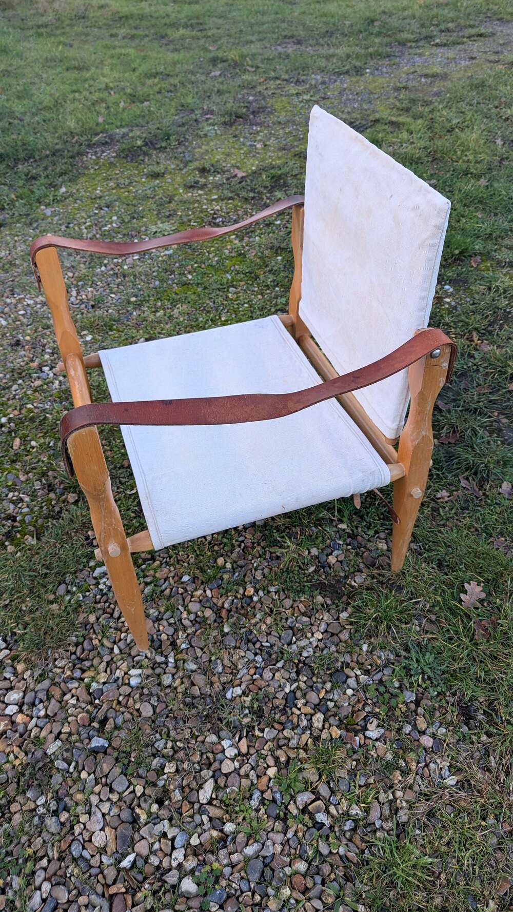 A 1960's beech and canvas safari or campaign chair in used condition measuring 61 cm x 59 x 79Date1960s