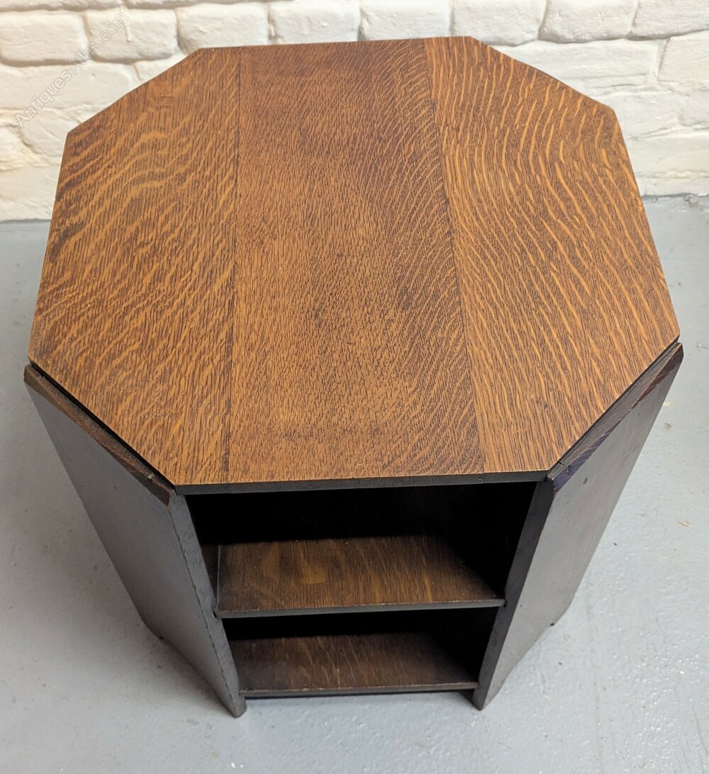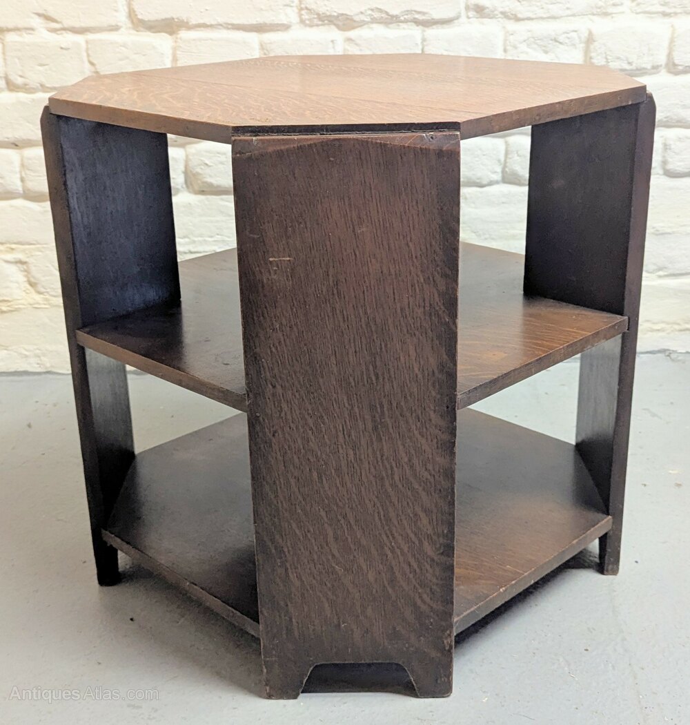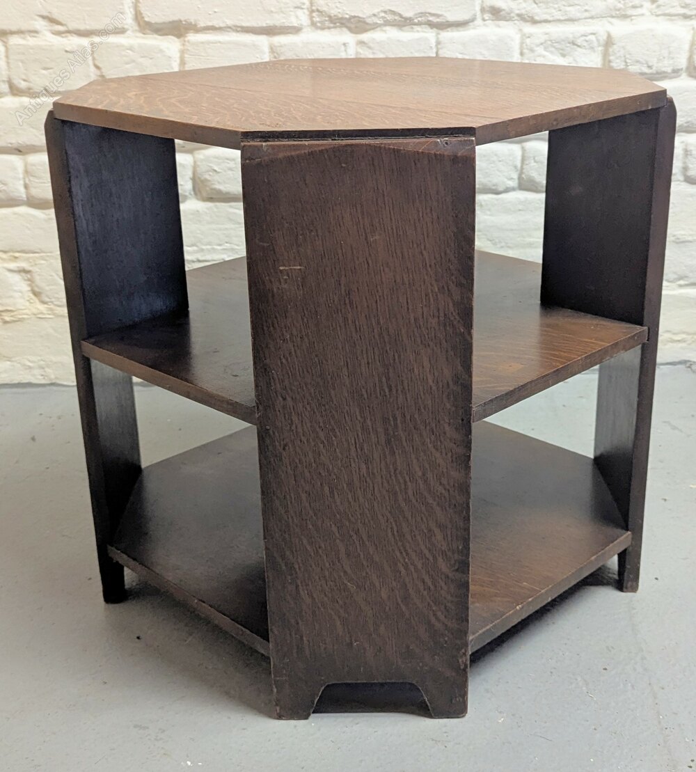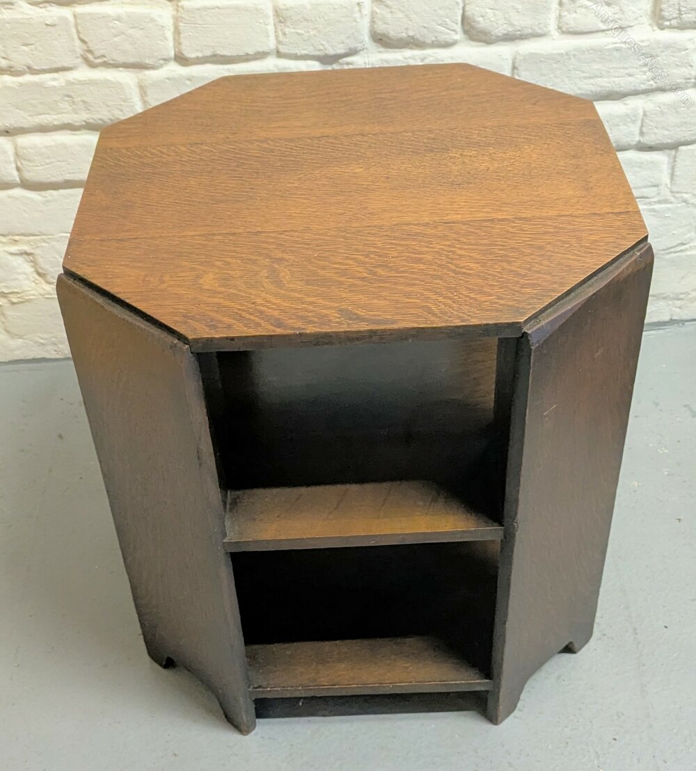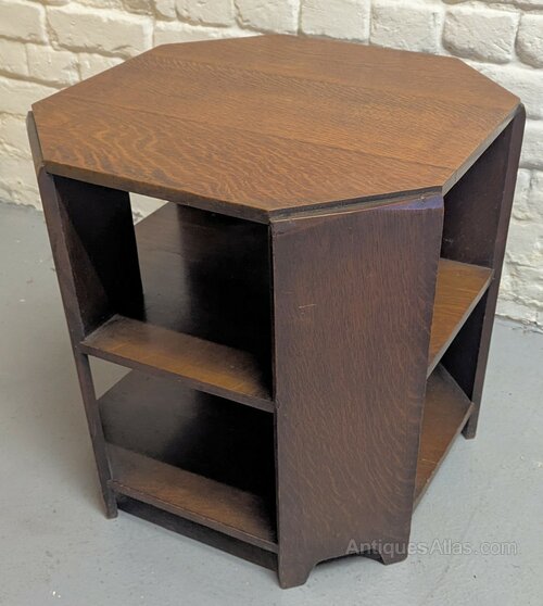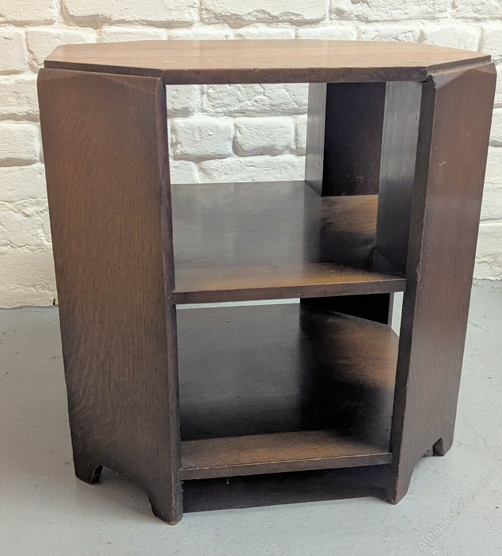 A small Heals book table in used condition measuring 52 cm x 57 x 57.DateArts and Crafts