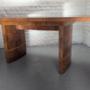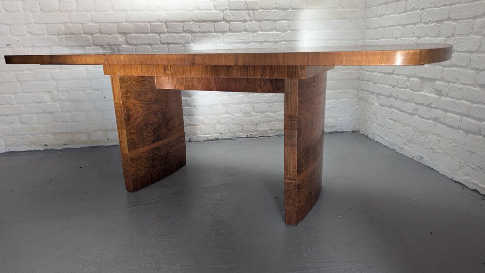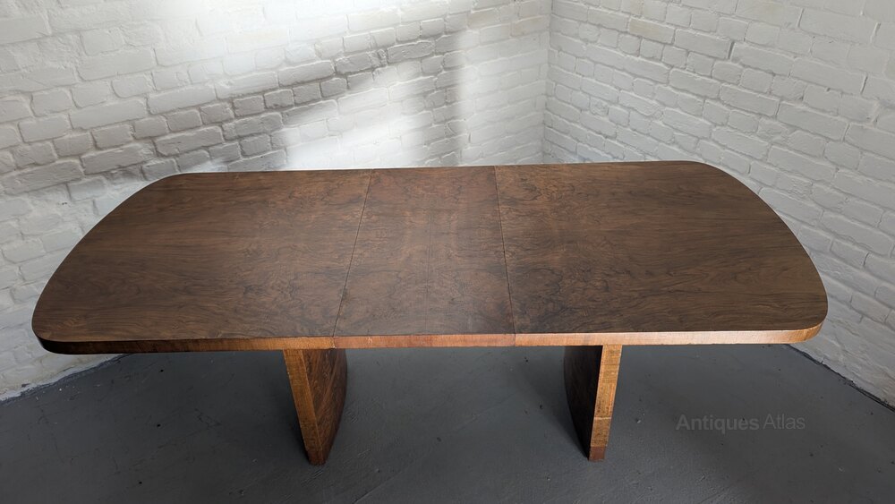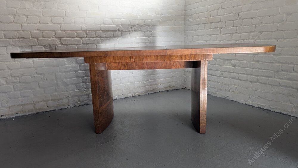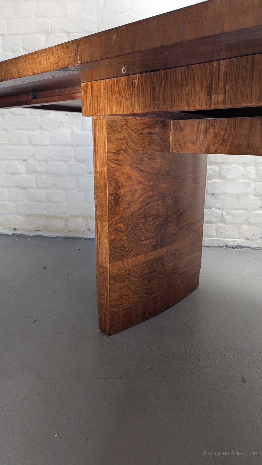 An extending Art Deco table needing a few small veneer repairs and repolishing but otherwise in good used condition measuring 212 cm (168) x 91 x 74.DateArt Deco
