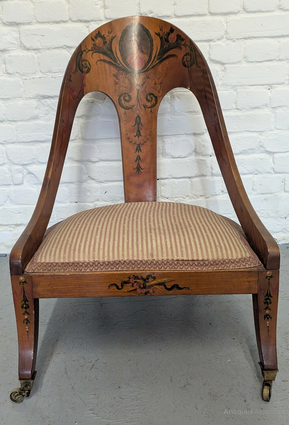 Regency Polychrome Satinwood Spoon Backed Chair