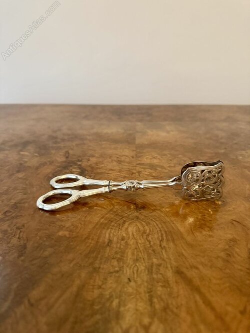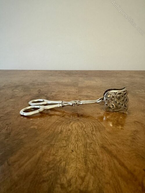 Fine Quality Pair Of Antique Silver Serving Tongs