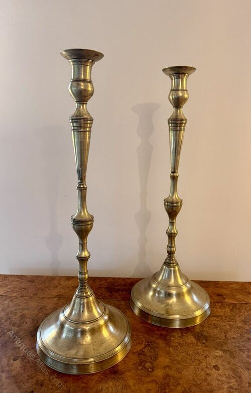Pair of large antique Victorian brass candlesticks