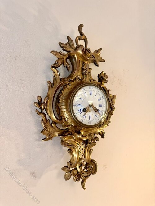 Stunning quality antique Victorian French neo Rococo wall clock, having a stunning quality antique 19th century French cartel wall clock, cased within a beautiful gilt metal neo rococo case with scrolling acanthus leaves surrounding a white circular enamel dial with blue Roman numerals having the original gold coloured ornate hands matching the style of the case, with a quality eight day French movement striking on a bell.D. 1830