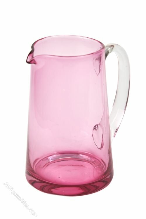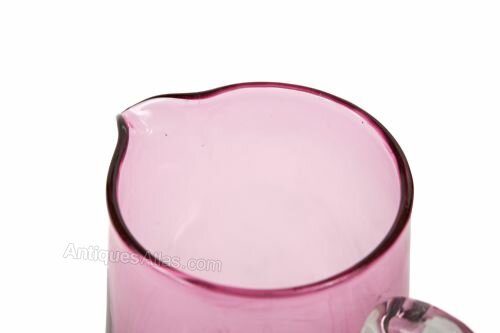 Antique Cranberry Jug With 6 Antique Glasses, the jug is lovely and simple in design having a clear glass cranberry body with a clear glass handle and 6 clear cranberry glasses. Great overall condition and lovely colour.Jug -