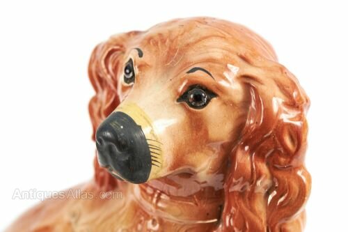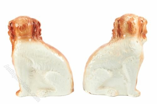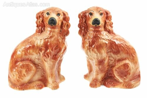 Pair Of Antique Staffordshire Spaniel Dogs