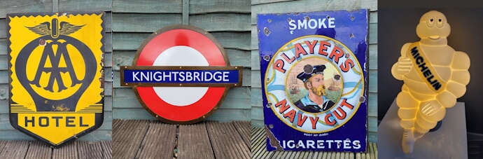 We are collectors from generation to generation who love genuine and unique items. We have an interesting selection of collectables like: Enamel signs, Automobilia, London Underground signs (roundel, target), Advertising signs, Railwayana signs, Road signs with reflectors, Michelin man figurines, Swarovski crystal figurines, school engine models and others. We keep our treasures in storages and are happy for you to see them by appointment. To see all items, we have for sale visit our online store. We are happy to ship worlwide. Artur & Agnieszka UniqueitemsGB.