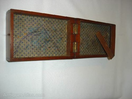 Folding mahogany Victorian travel box, it has rosewood, mahogany and satinwood veneers. The interior has a sliding cover to the peg box.Measurement closed 5 1/4" x 3 1/4" x 2"