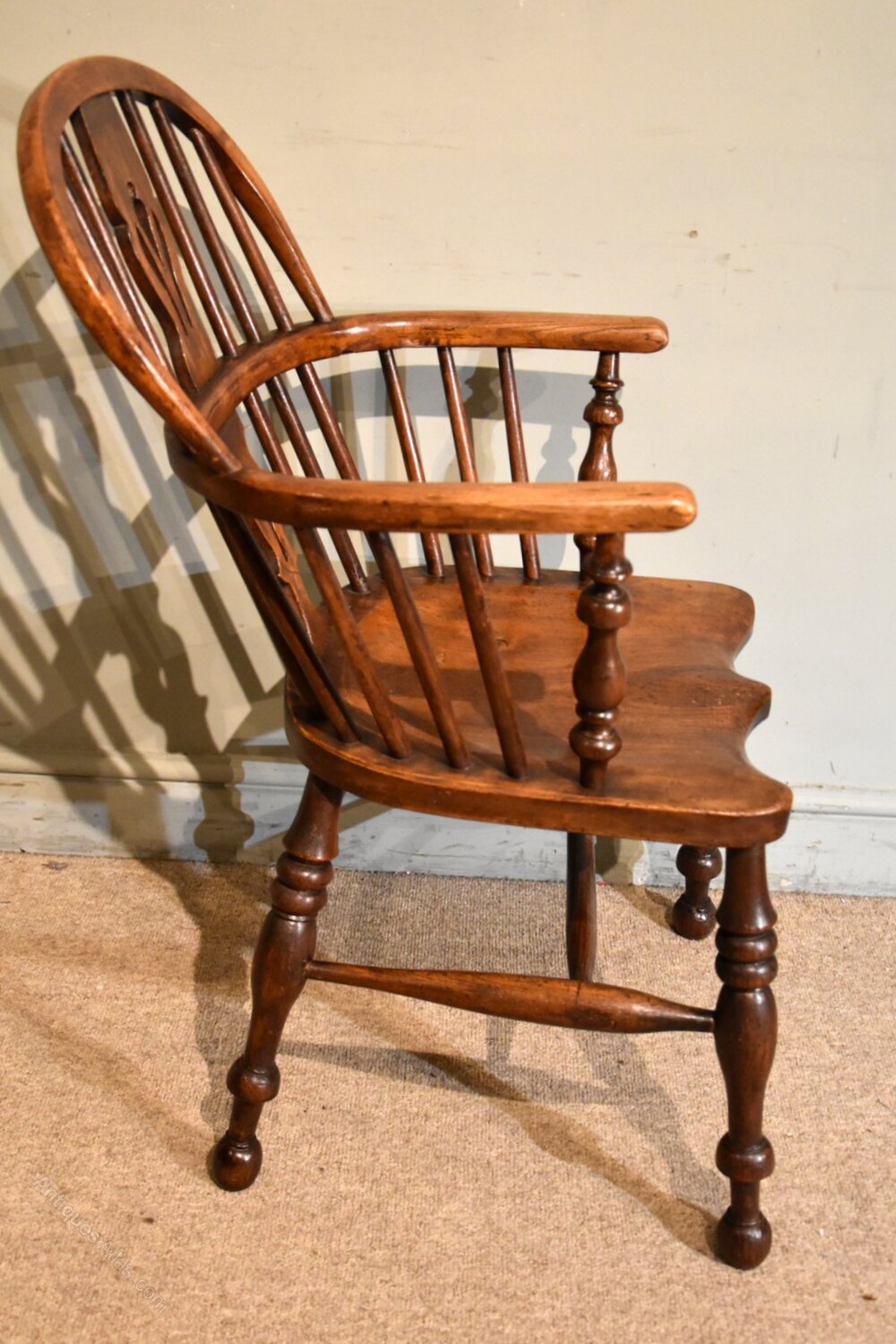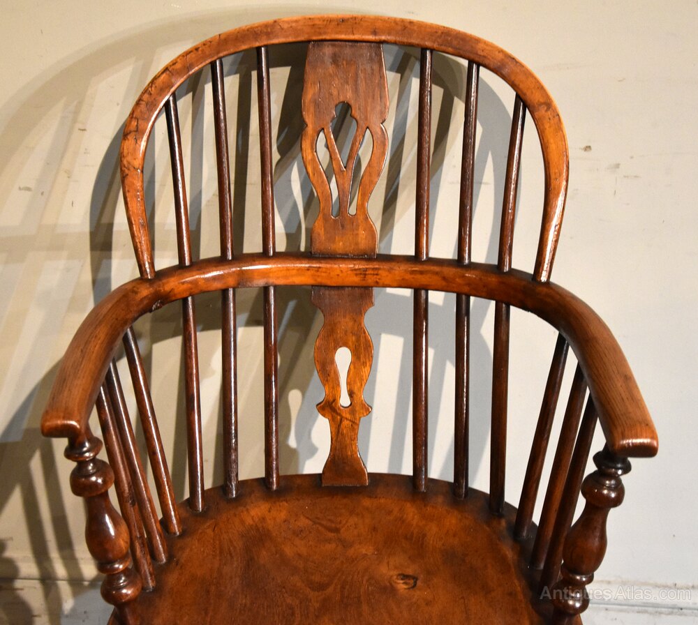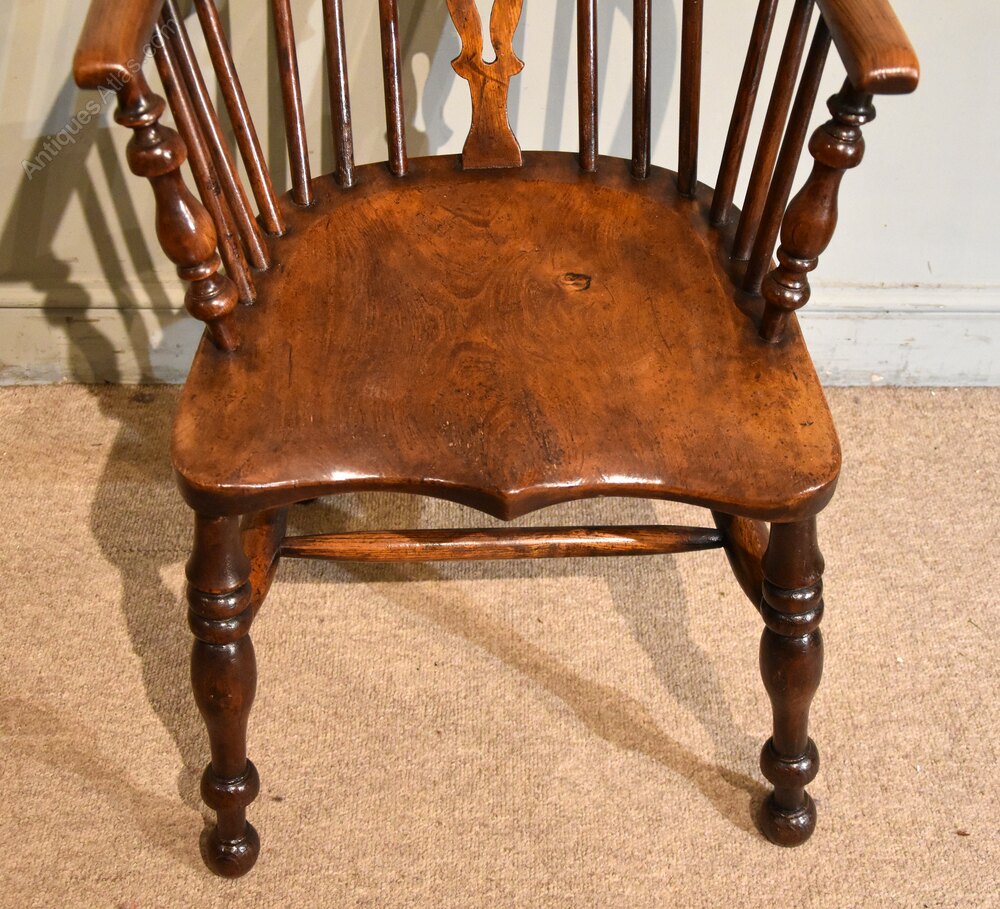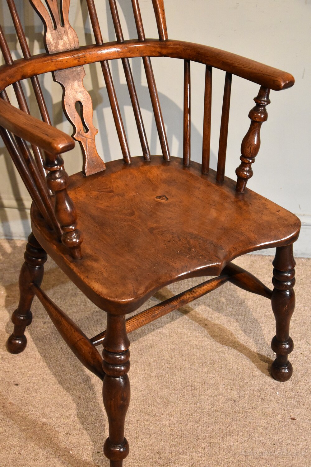 A Handsome early 19th century ash and elm windsor armchair of fabulous colour with an unusual shield shaped seatHeight 36" 92cm