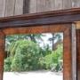 The frame to the mirror is dressed in flame mahogany laid in a lovely radiating pattern.