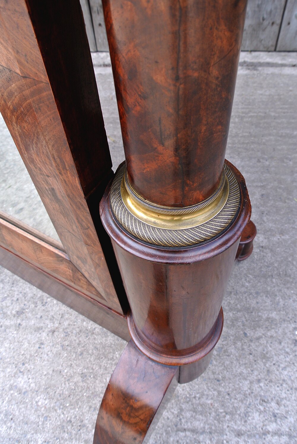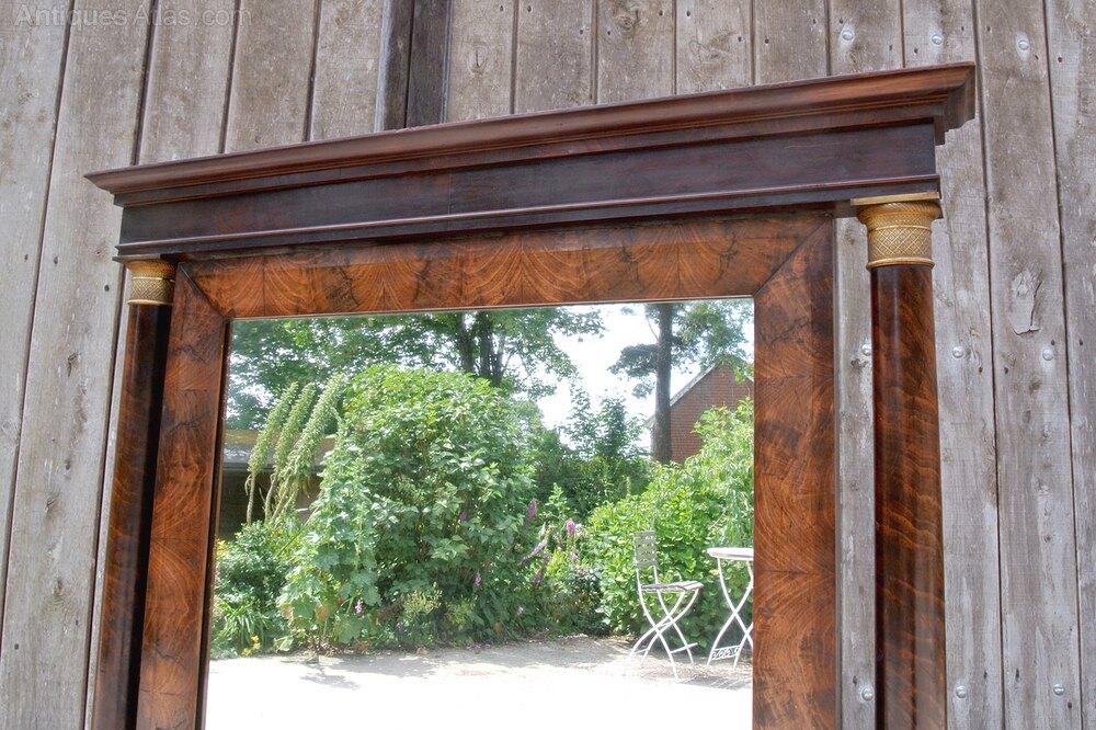 The French Empire design became popular in the Regency period when the fashions of the Napoleonic court were adopted by the Prince Regent and aristocracy and this mirror was made between 1810 and 1820.