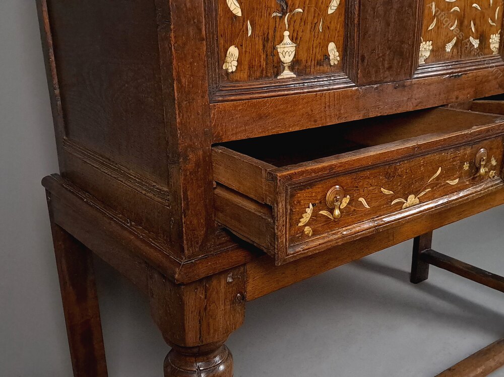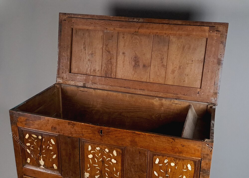 Charles II Ivory Inlaid Elm Chest on Stand c. 1660