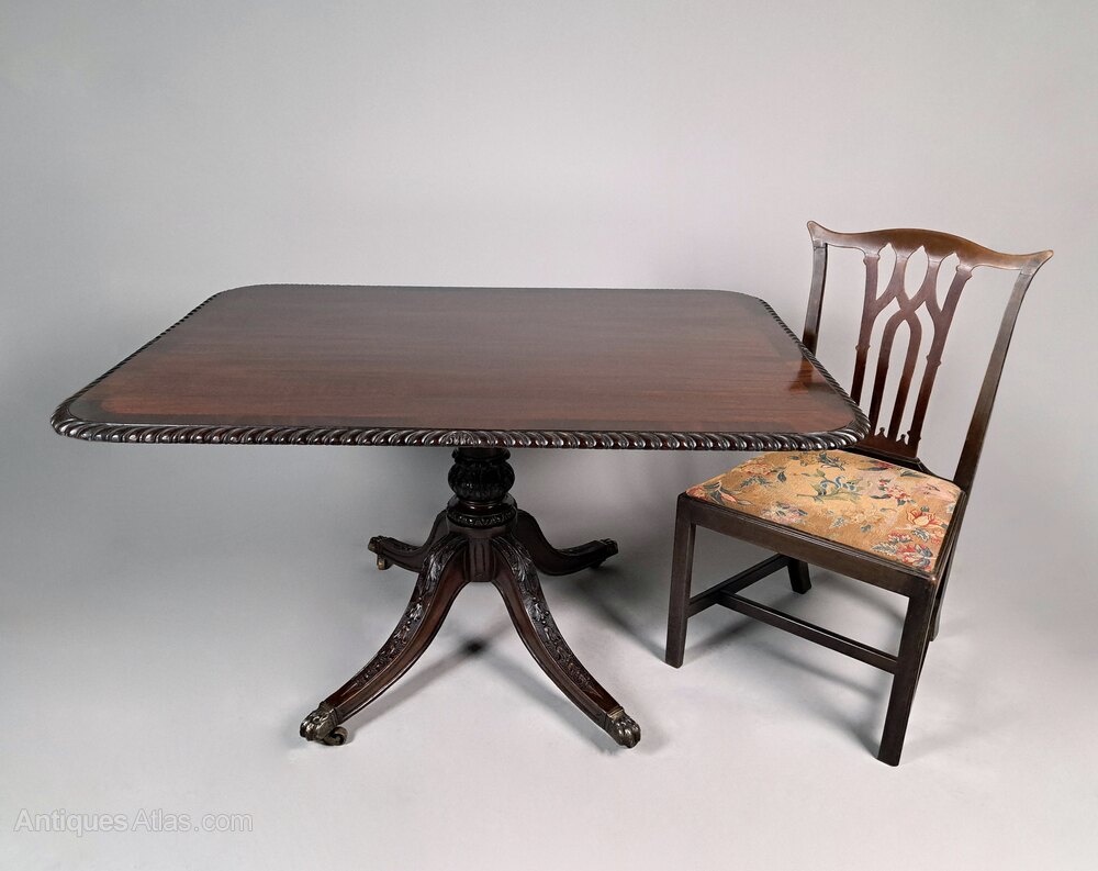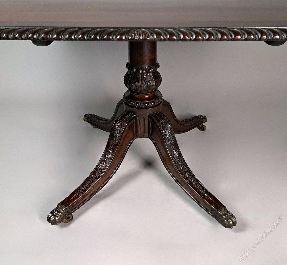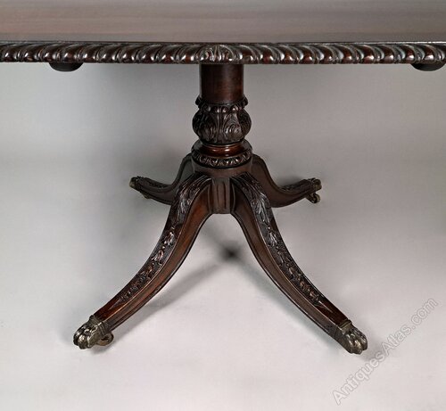 This is an exceptionally rare and extremely high quality large dining table seating up to 8 people.The table is made from solid Cuban mahogany and has a hand carved gadroon and acanthus border and an inlaid wide crossband of figured mahogany.