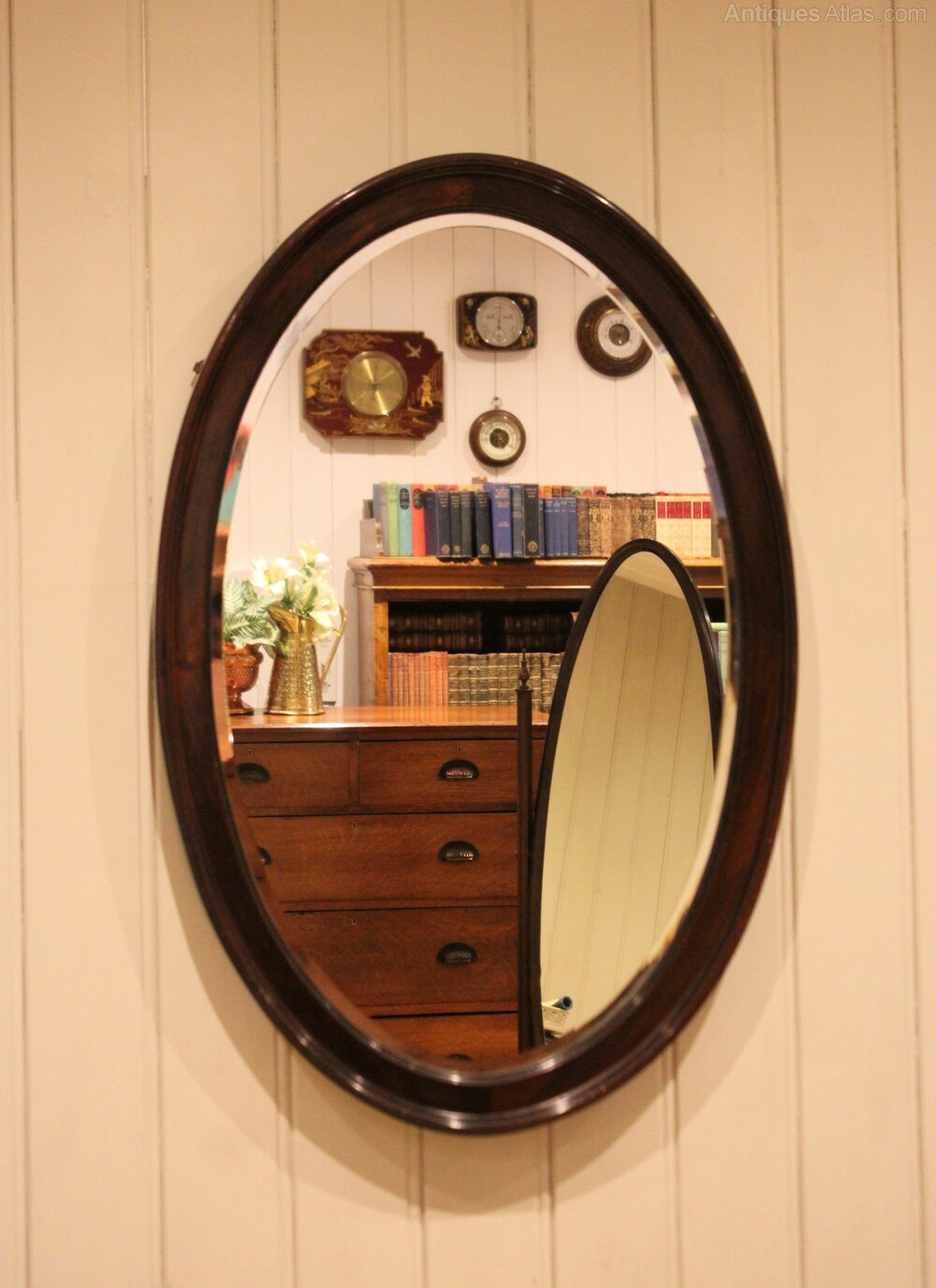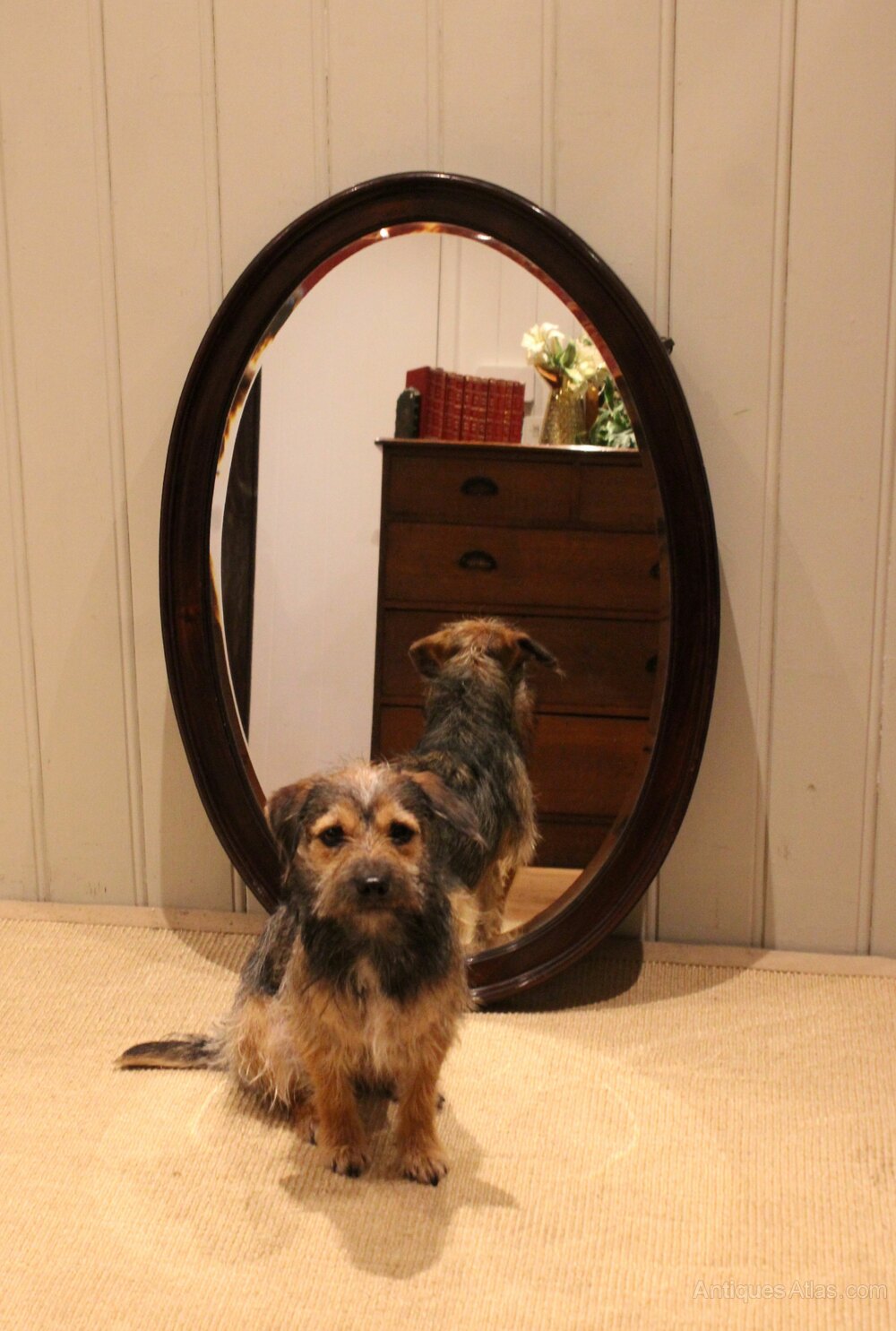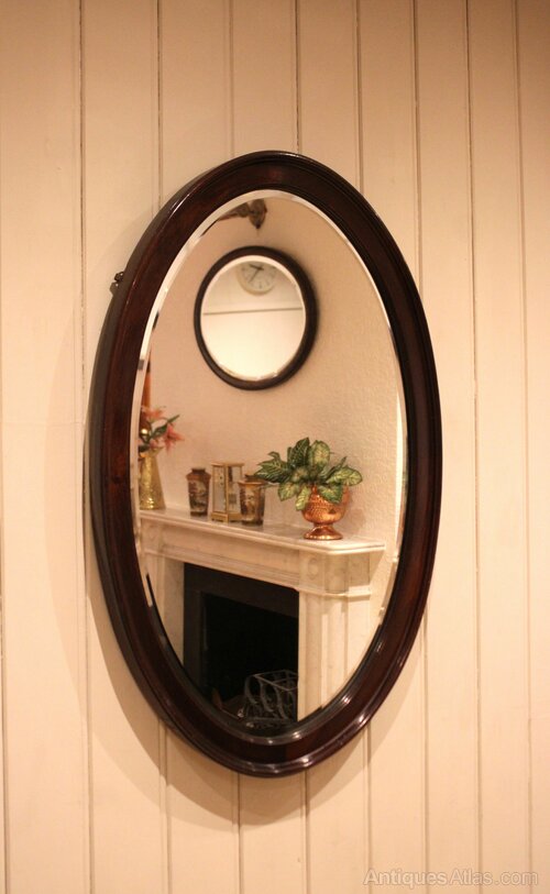 Late 19th century mahogany framed oval mirror having bevel edge glass .Height