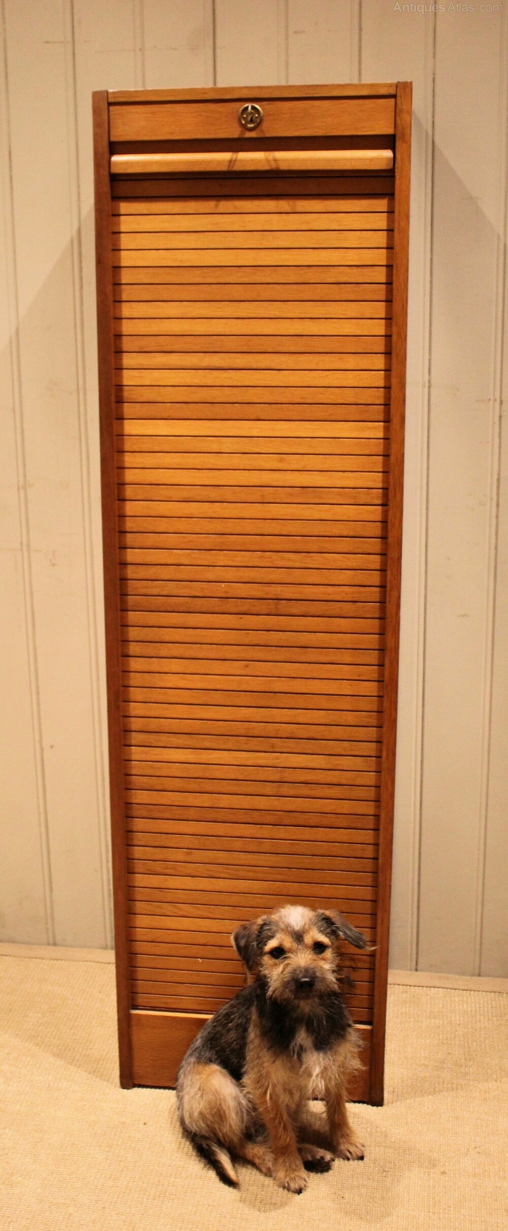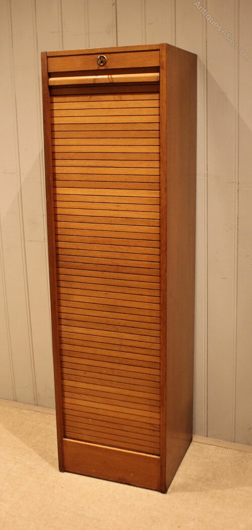 French Oak Single Tambour Front Filing Cabinet