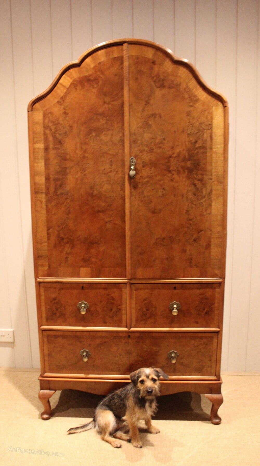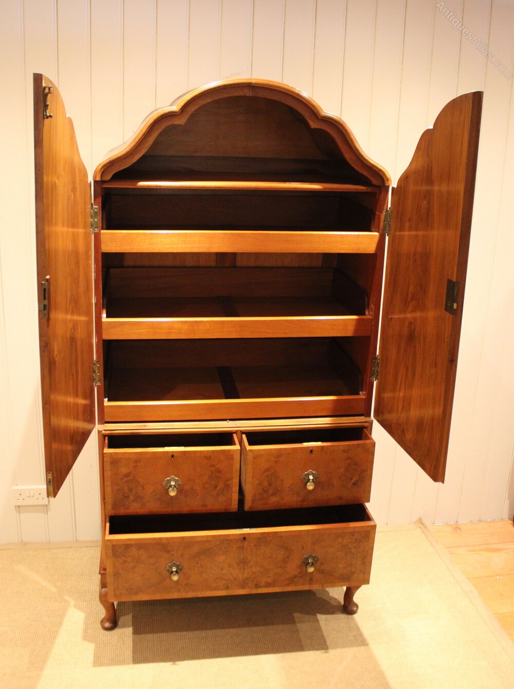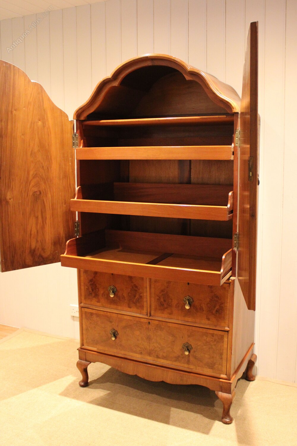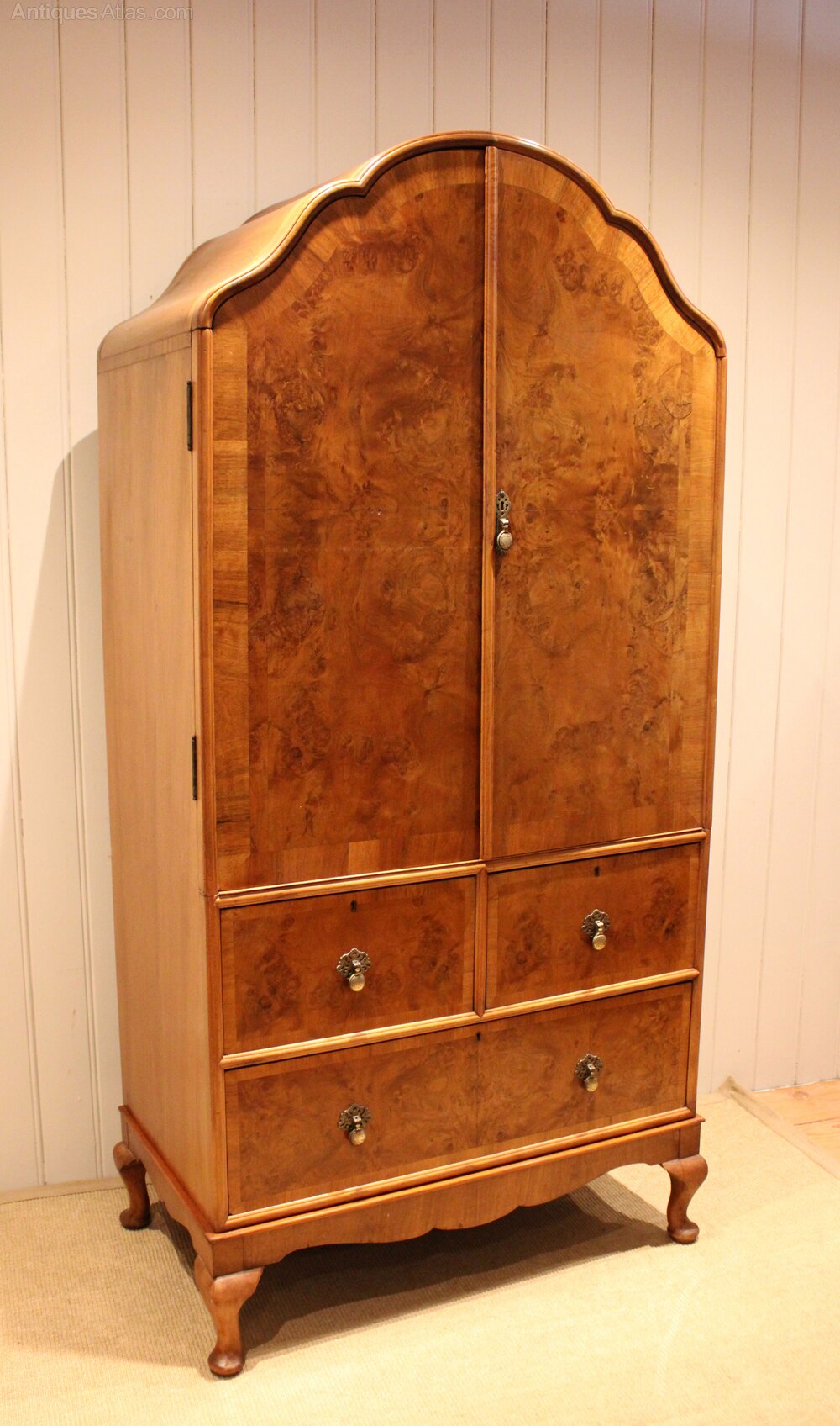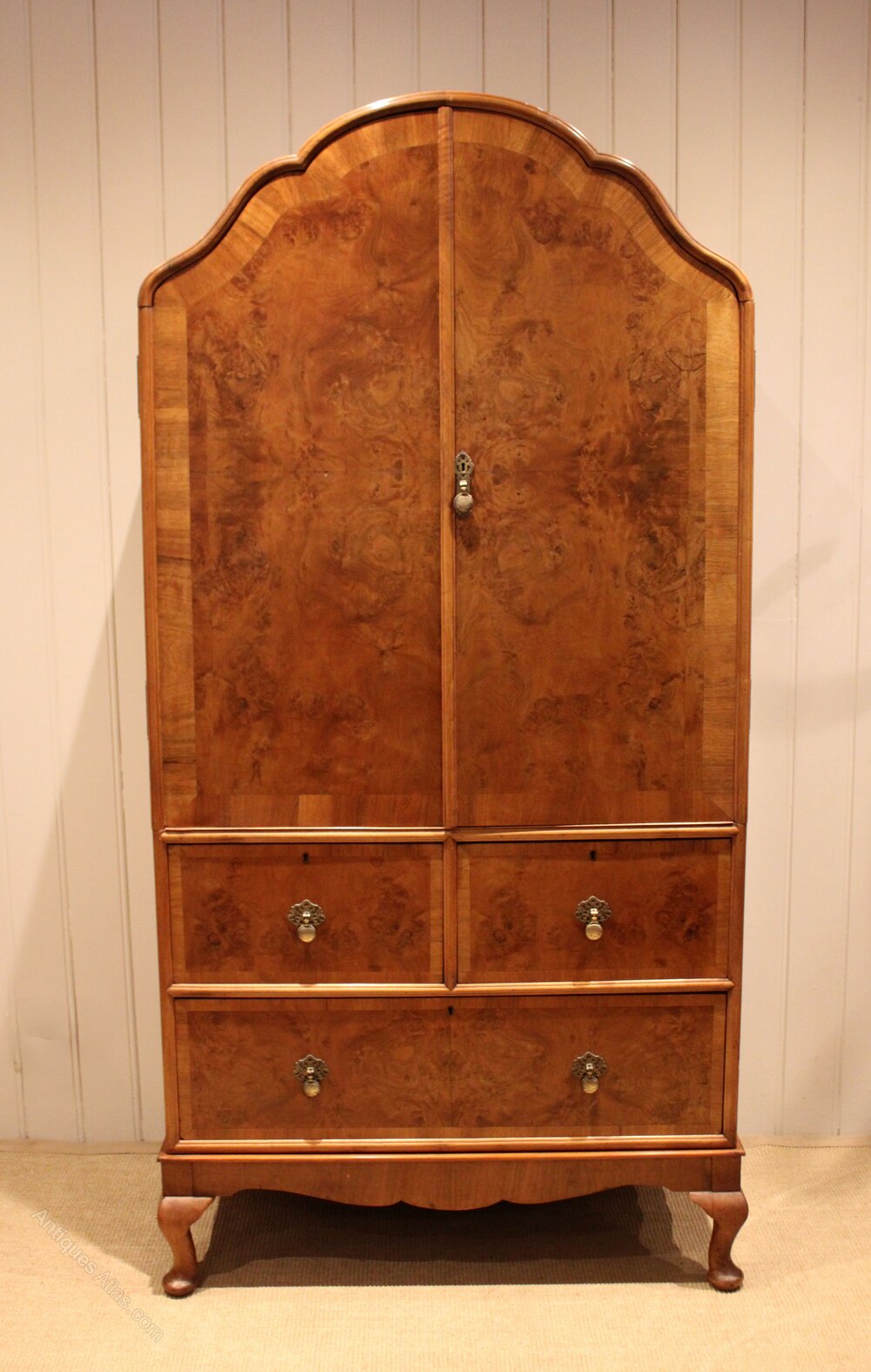 Burr Walnut Queen Anne Style Linen Press