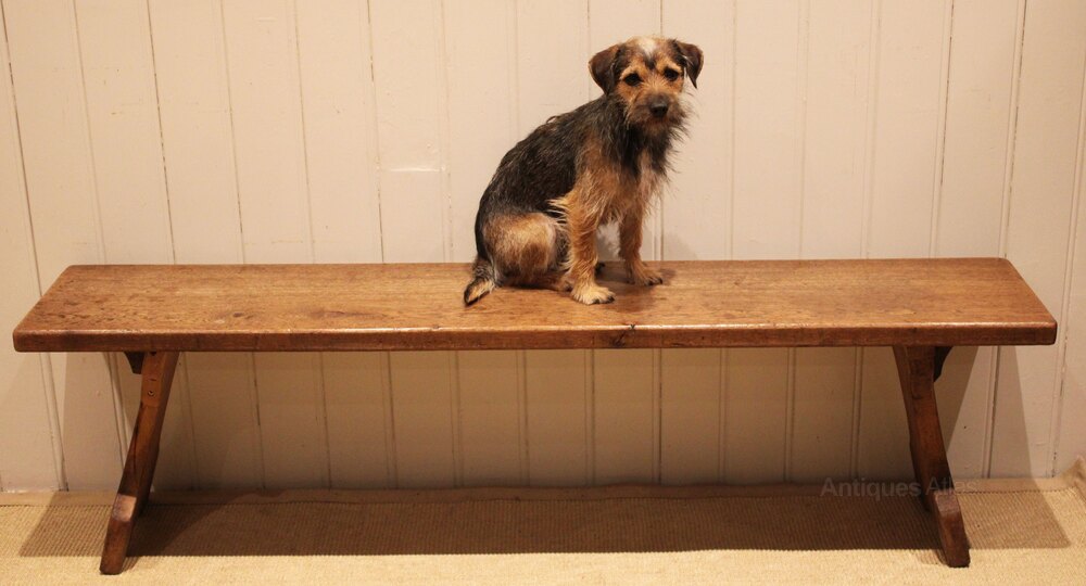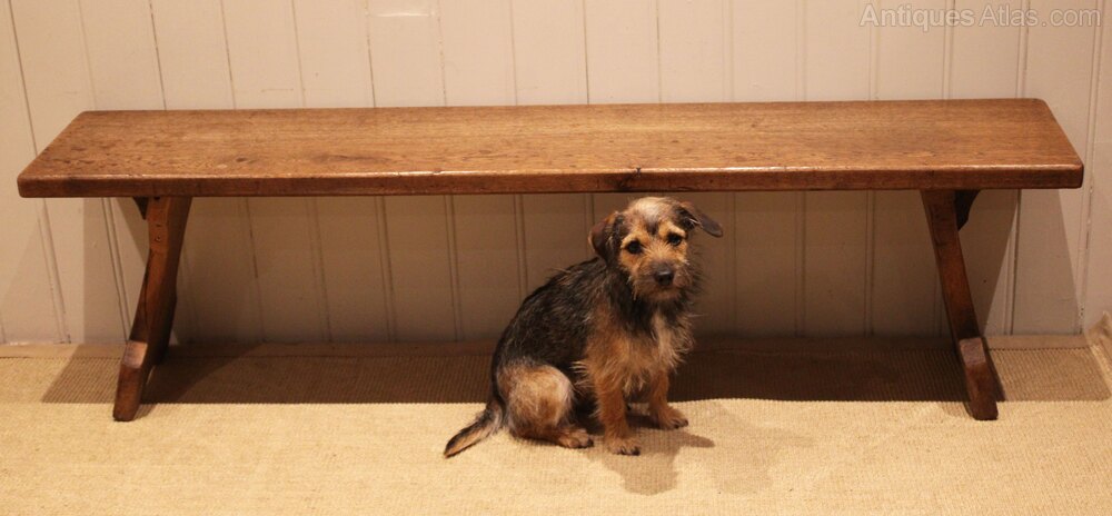 Solid oak farmhouse bench having shaped supports to each side .Height