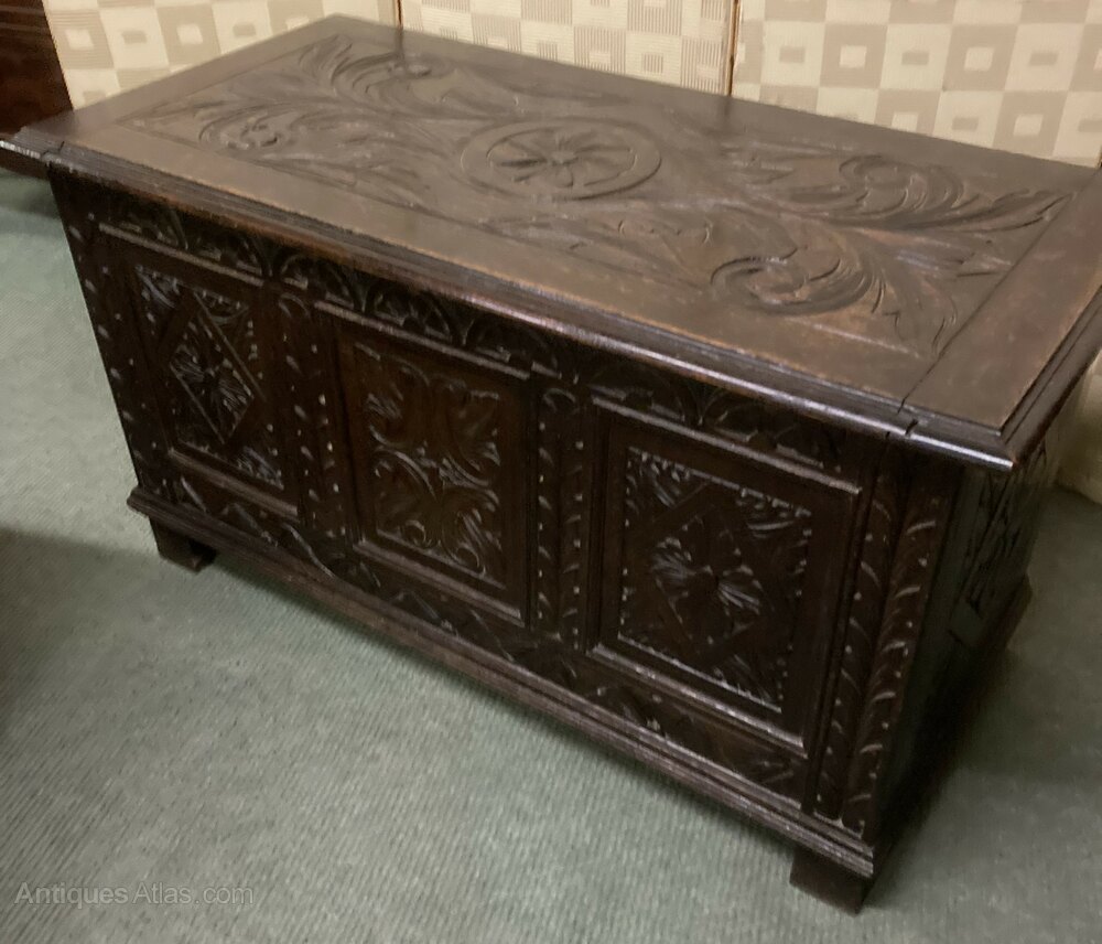 1800s Oak Carved Coffer
