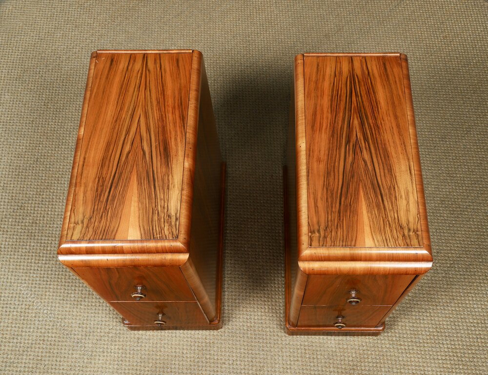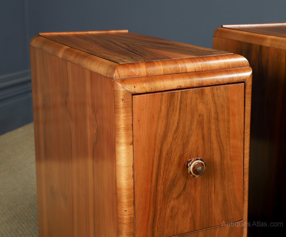 Pair of Art Deco Walnut Bedside Tables Nightstands
