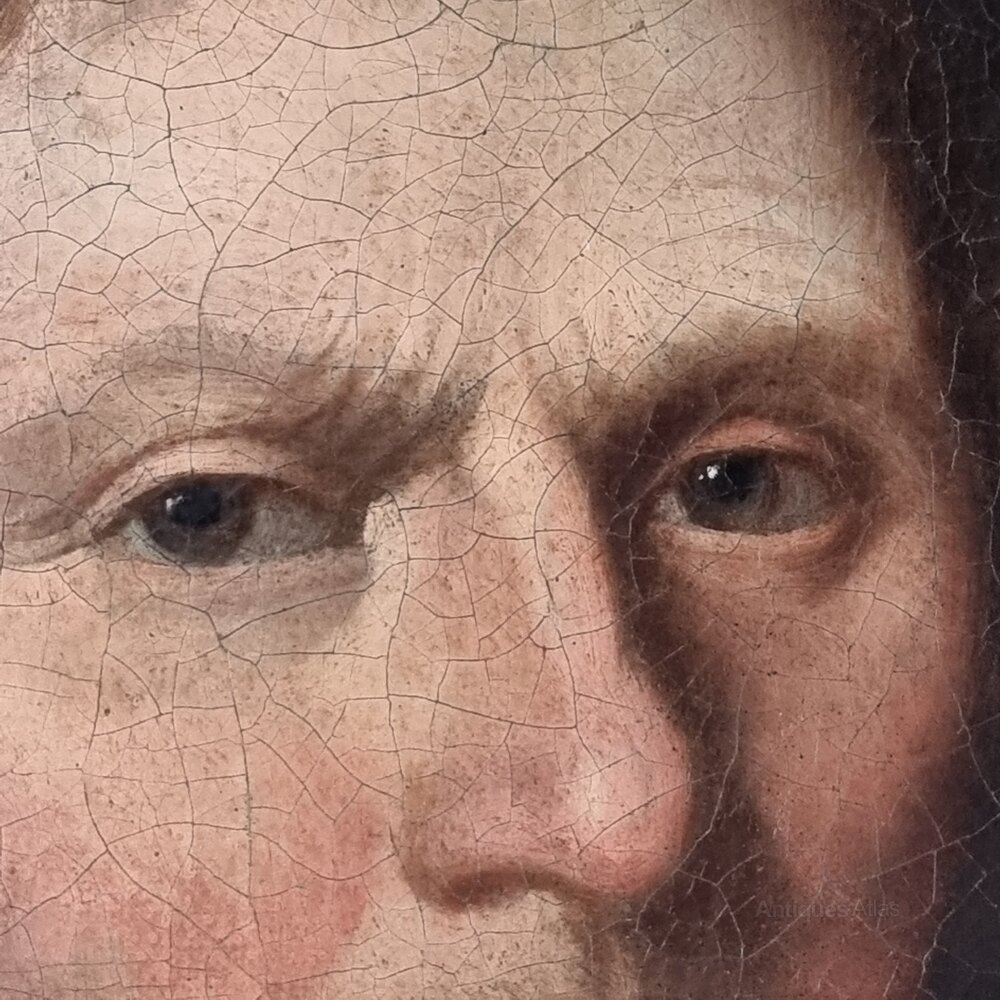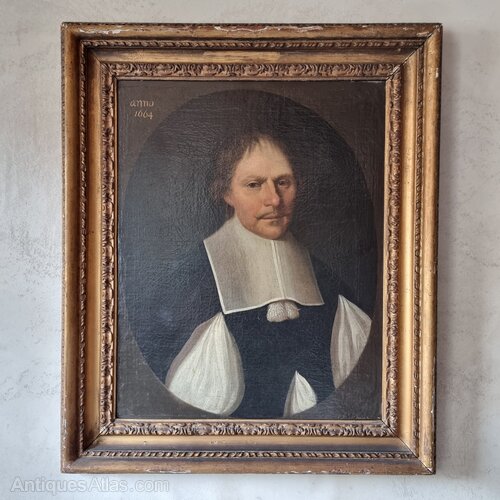The painting is dated 1664 and is in good condition and has been extended top and bottom at some stage, presumably to fit the frame that it is in. The frame its is in good condition with the exception of losses to the gilding.