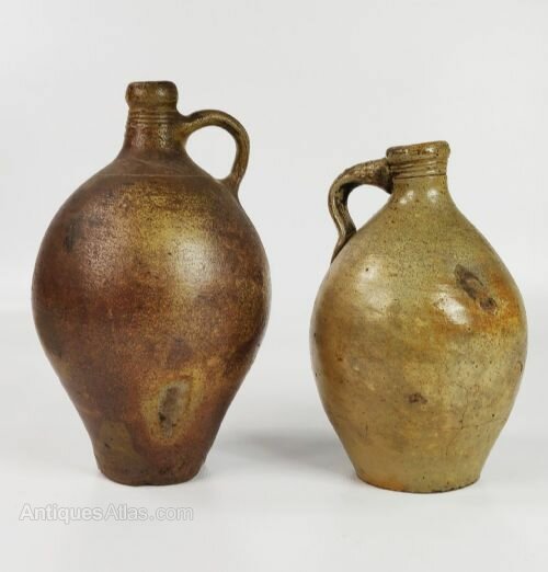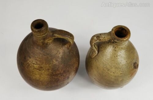 Although the two bellarmines are of plain form, they look fantastic on early english oak furniture.
